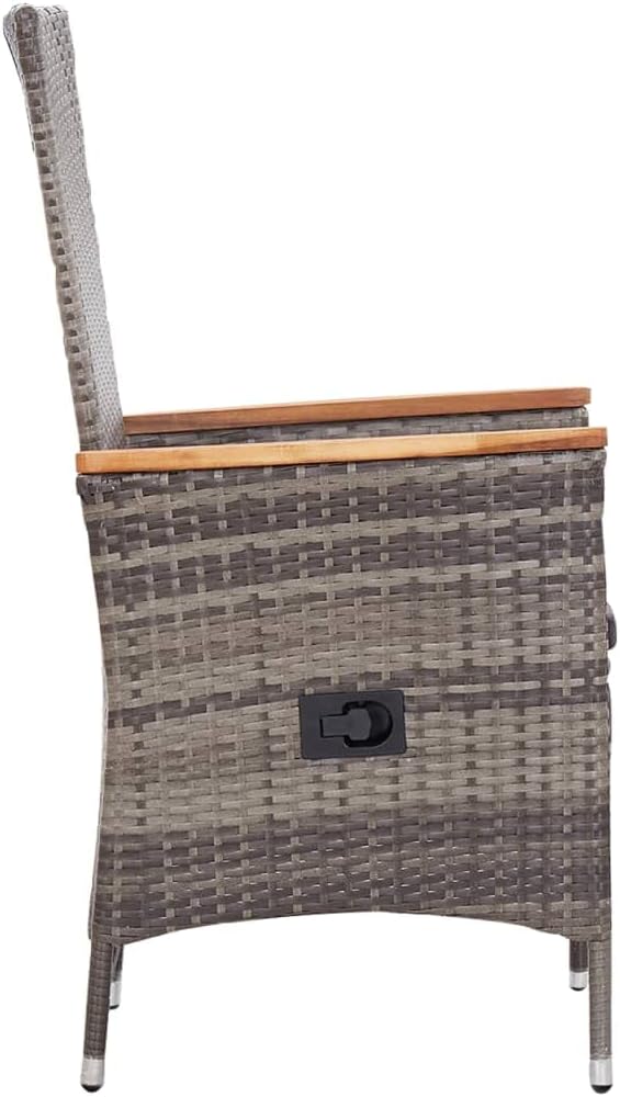 Our stylish poly rattan armchair will become the focal point of your garden or patio!Made of the water-resistant PE rattan, the armchair is easy to clean suitable for daily use. The powder-coated steel frames make the chairs strong and sturdy. The reclining chairs give you all the comfort needed. The backrest will recline by pulling the button on the side. Thanks to their lightweight construction, they are easy to move. It is also delivered with highly comfortable, thickly-padded seat cushions for the comfort. The low-maintenance polyester covers can also be removed and washed. Assembly is easy.Note: We recommend covering the set in the rain, snow and frost.Poly rattan Color: BeigeCushion Color: Cream whiteMaterial: PE rattan, powder-coated steelCushion cover material: 100 % polyesterDimensions (not reclined): 22.8" x 24.4" x 42.5" (W x D x H)Dimensions (reclined): 22.8" x 35.4" x 35.8" (W x D x H)Cushion thickness: 2" Seat width: 18.5" Seat depth: 18.5" Seat height from the ground without cushion: 16.9" Armrest height from the ground: 26.4" Adjustable backrestAssembly required: YesDelivery contains:2 x Chair2 x Seat cushion