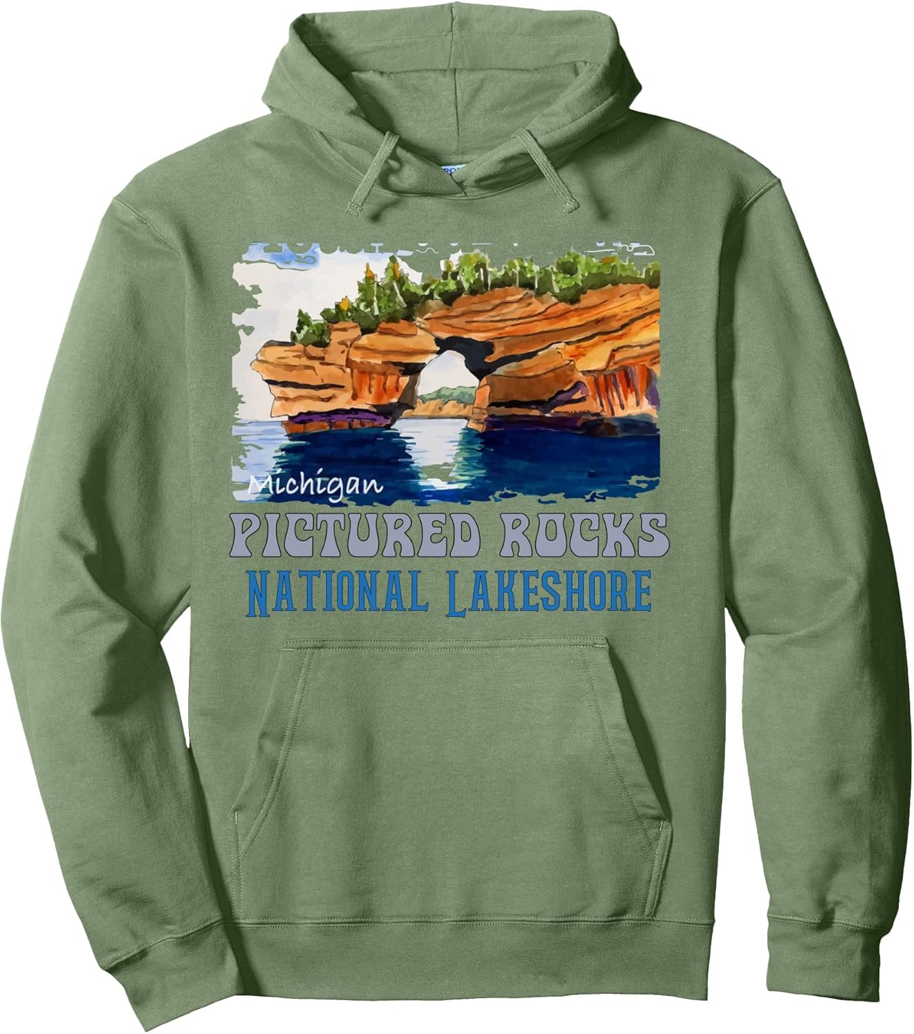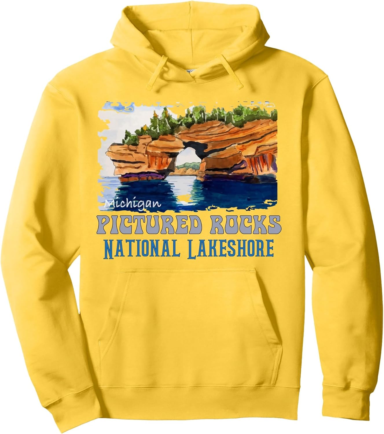 | Item Type Name | Pictured Rocks Lakeshore US state of Michigan Vintage parks Pullover Hoodie, Adult Unisex, White, X-Large |