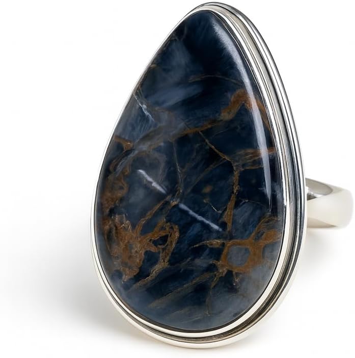 A handmade statement ring featuring a blue Pietersite gemstone set in 925 sterling silver is a dramatic piece of jewelry with a bold, celestial appearance. The blue Pietersite, with its swirling patterns and shades of blue, brings a touch of natural wonder and mystique to the design. Set in a sterling silver setting that complements the stone's dynamic patterns, this ring makes a statement with its eye-catching beauty. Crafted with care in a design that showcases the Pietersite's unique charm, this ring is a striking accessory for those who appreciate jewelry with a sense of adventure and natural drama. The combination of the blue Pietersite and the sleek silver creates a captivating balance of elegance and boldness in this handmade ring.》Product Details:- Product - Ring Metal - 925 Sterling Silver Stamp - 925 Gemstone - Pietersite Gemstone Color -As seen in the picture but may some vary in color and pattern Gemstone Shape - Pear Gemstone Treatment - No Treatment (Natural) Product Weight - 8.00 Approx 》About Product:- Our products are completely handmade and made of pure 925 sterling silver and natural gemstones, so don't worry about the product, 100% customer satisfaction guaranteed. 》Problem Resolution:- Customer satisfaction is my top priority so if you have any questions or facing any problem, please feel free to contact us anytime. We will resolve your issue within 24 hours. Thank you for visiting my shop.