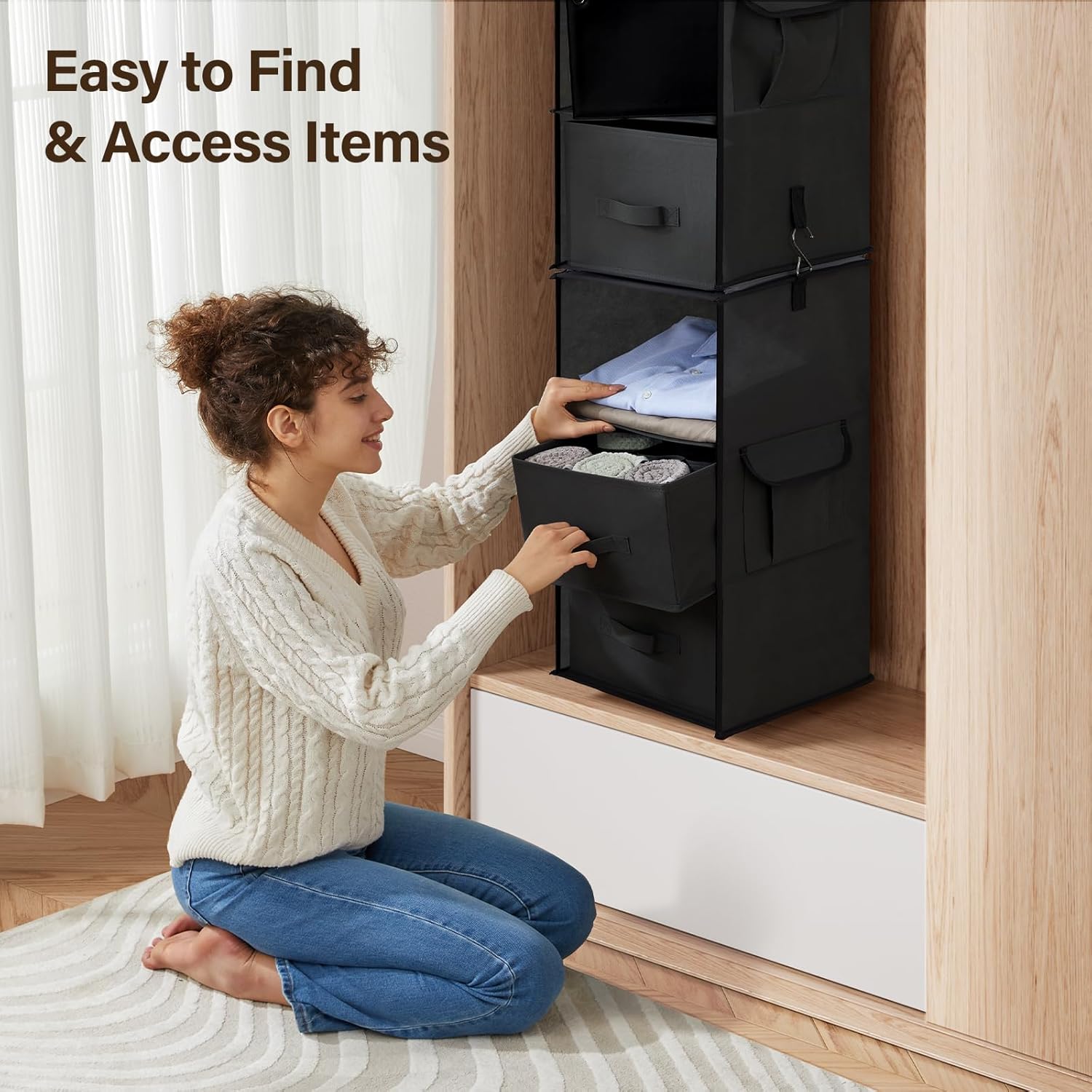 • Easy & Flexible Assembly: The 6-shelf hanging organizer features 2 separable units, each with 3 shelves for storage. Simply connect the closet hanging shelf units together or separate using the integrated zipper to perfectly fit your available closet space.