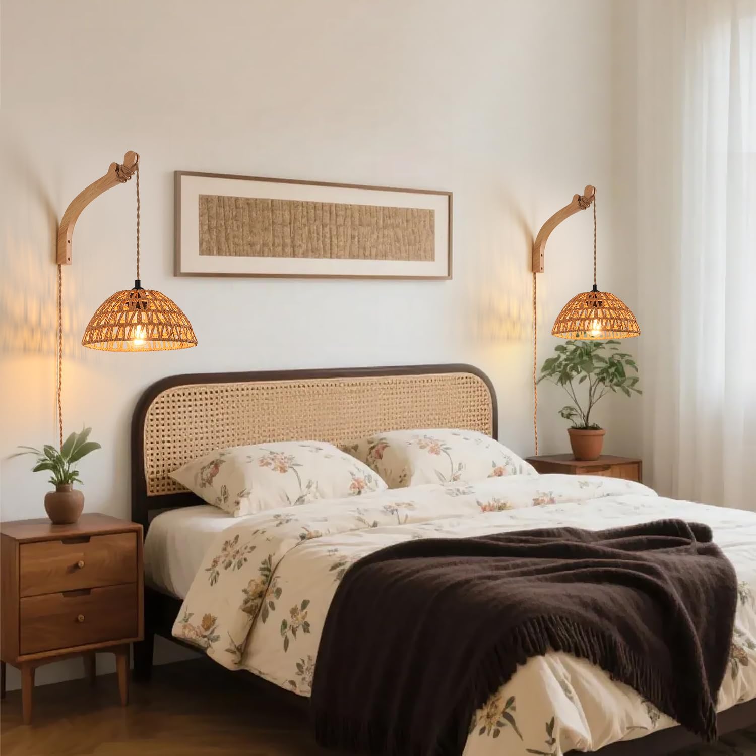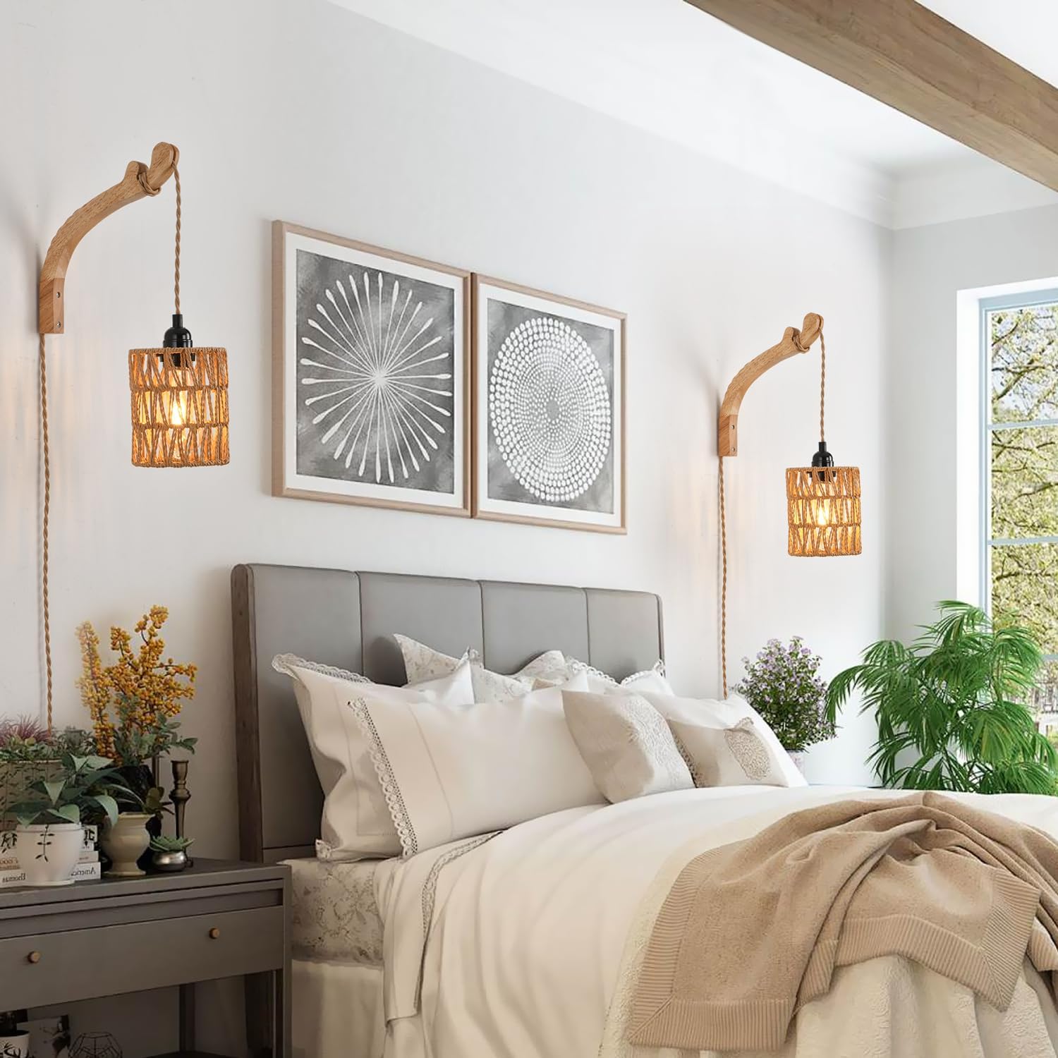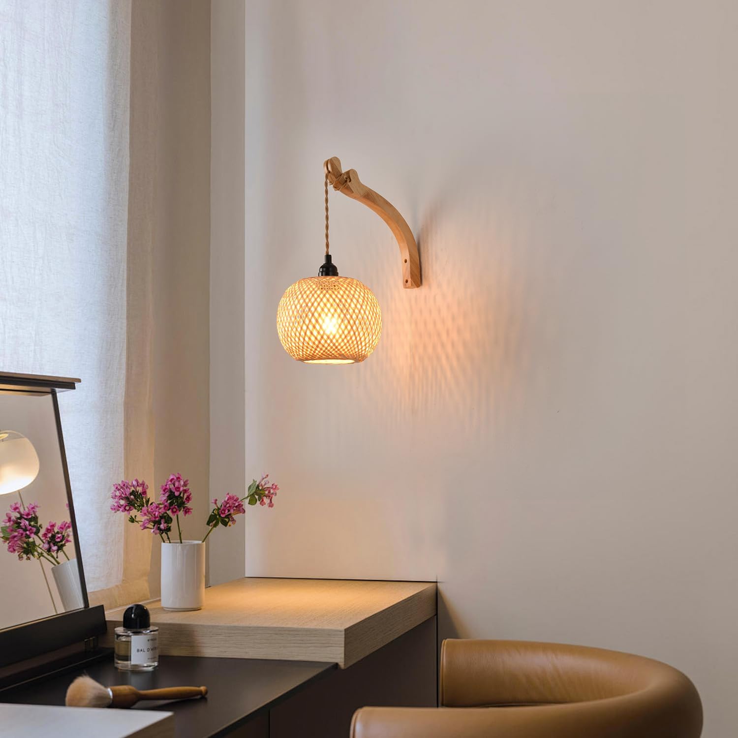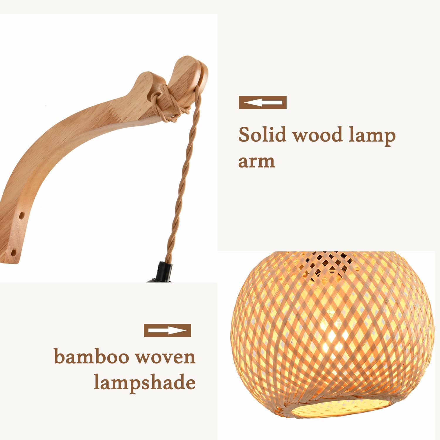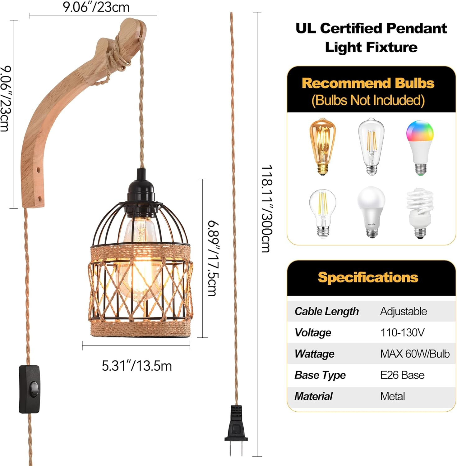 Bamboo Lantern Wall Sconces Voltage: 110V-120V Insulation Material: PVC Total Cord Length: 9.84ft(3.0m) Switch Type: On/Off switch (on the cord) Wattage: Suggest 60W would be very bright Socket: 1 x E26(Bulb Not Included) Bamboo lantern Lampshade Size: 7.87"*5.90"(L*H) Wood holder Size:8.26"*0.94"*9.84"(L*W*H) Material: 100% Natural Jute Rope+ High-quality wood + Bamboo Bulb Requirements: Incandescent, CFL bulbs and, LED bulbsPackage included 1x Bamboo lantern Lampshade 1 x Wood Shelf Bracket 1 x 9.84ft (3.0m)Light Socket with Switch Cord 1 x installation instructions (Note: all accessories needed for installation) 7.For a longer service life, please install and use it in a dry environment.