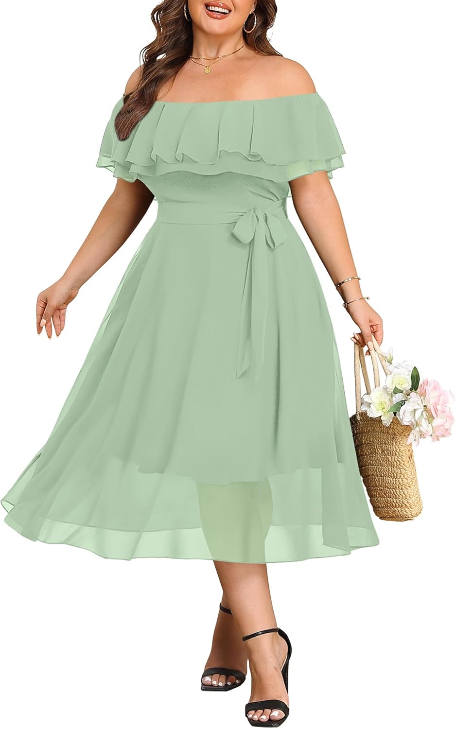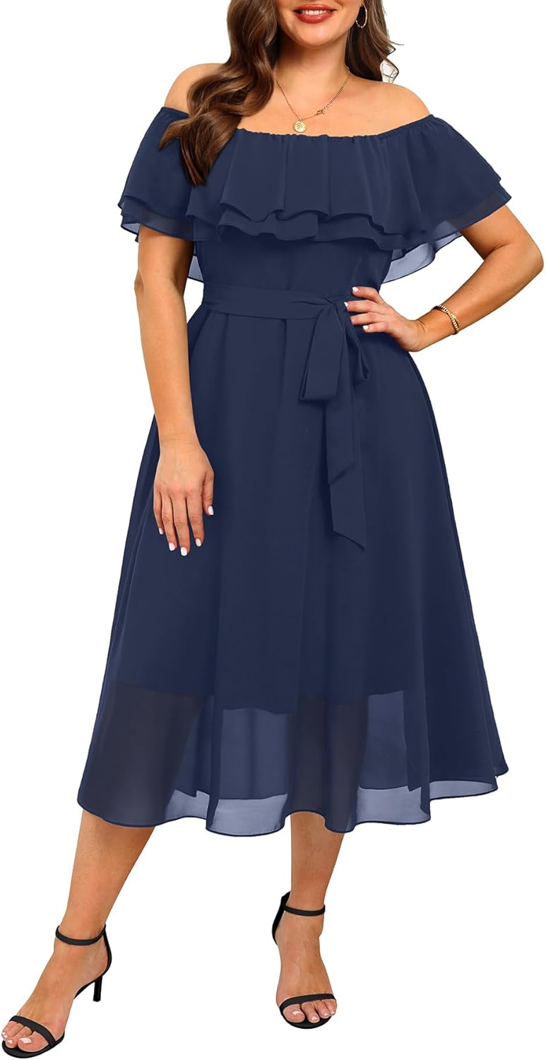 | Embellishment Feature | Ruffle, belt, chiffon, midi, off shoulder |