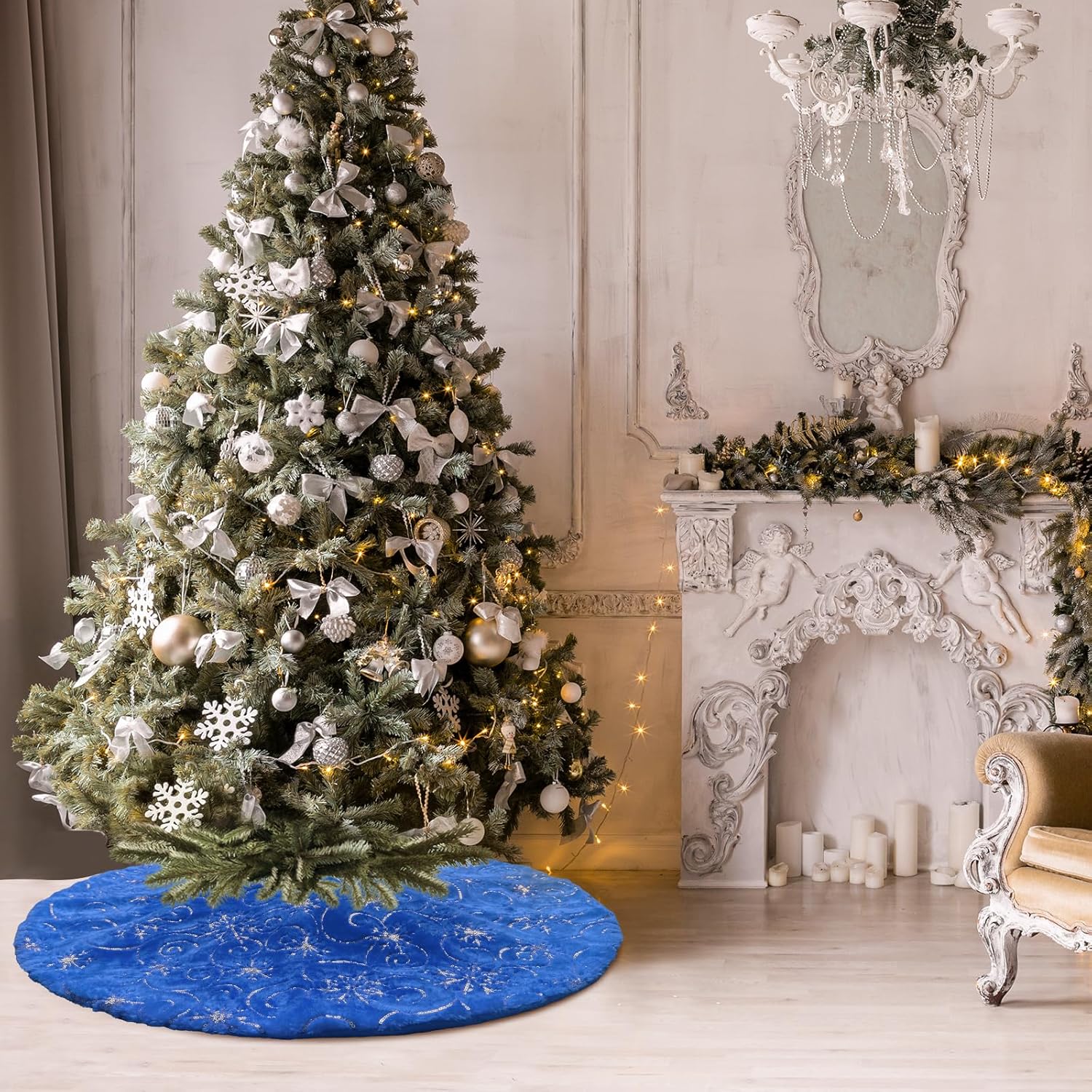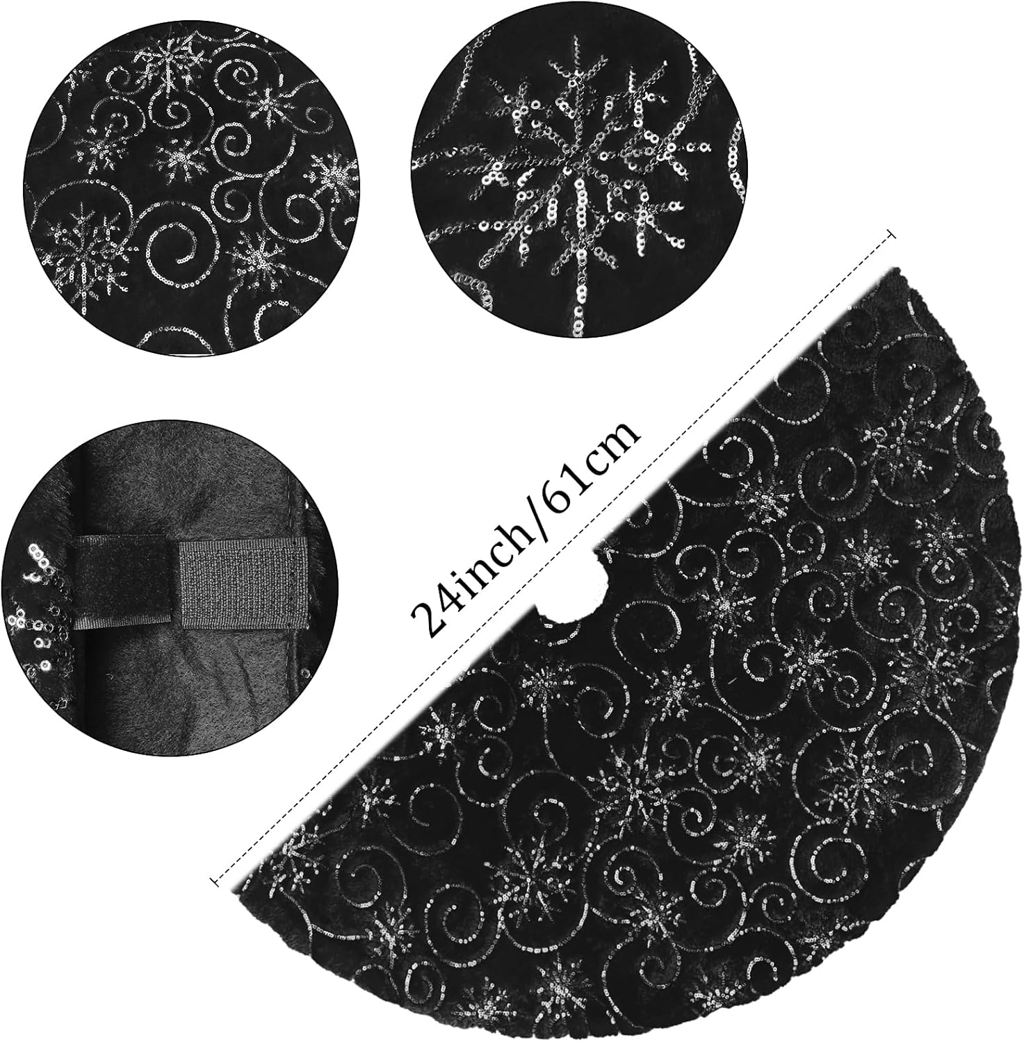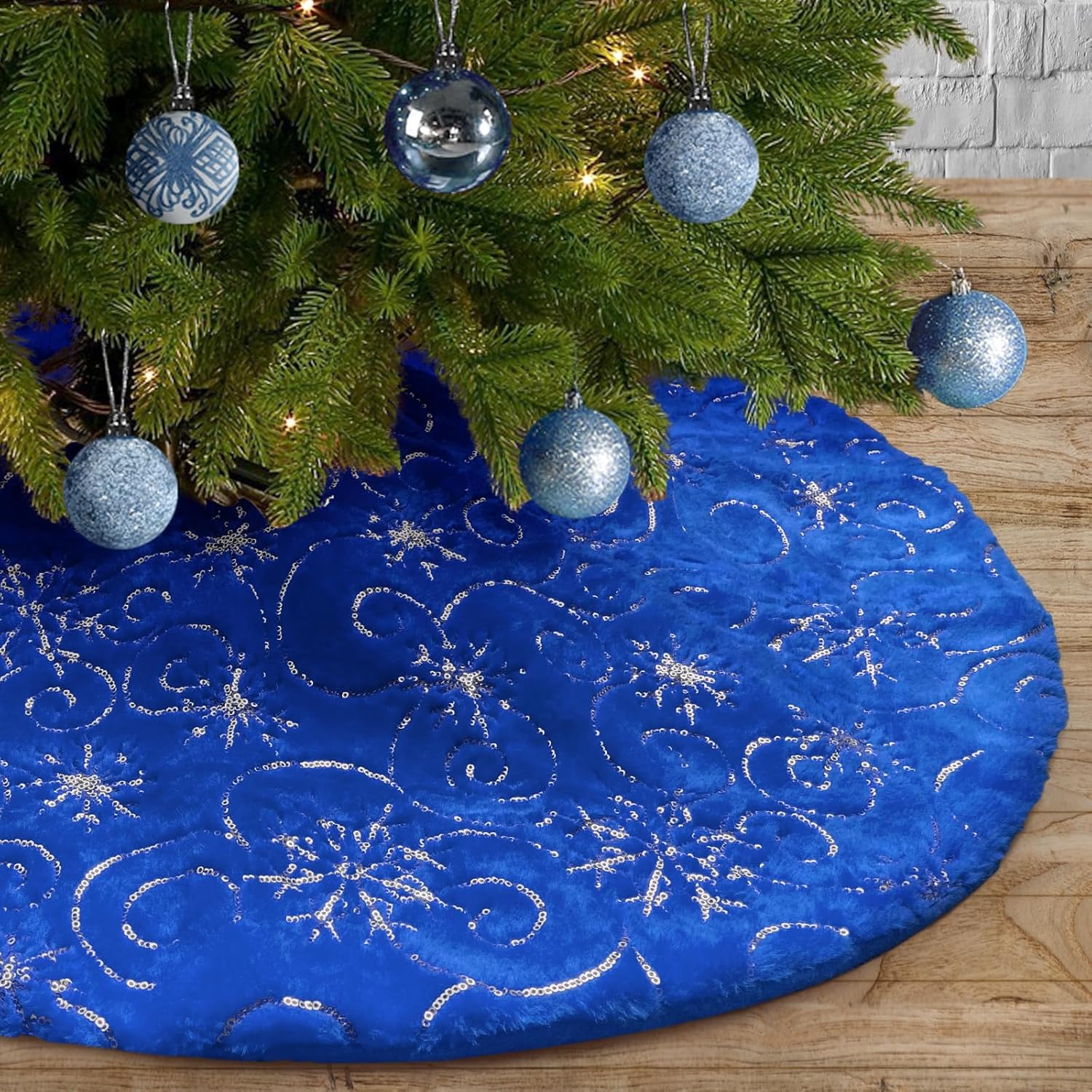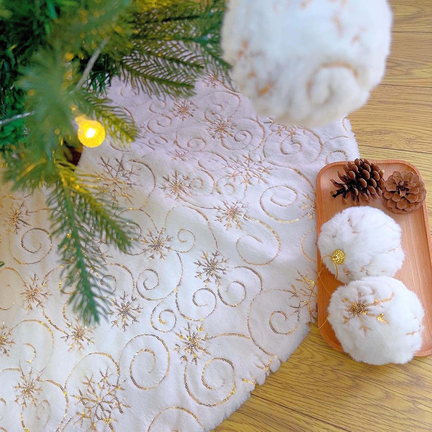Merry Christmas to everyone. Perfect for Christmas tree decoration, creating an enchanting Christmas holiday wonderland and party joyous atmosphere and beautiful holiday memories. Makes the perfect Gift for family and friends! Features: 1. Color: Snowy White + Silver Sequin Snowflakes 2. Material: Faux Fur + Sequin Embroidery 3. Diameter: 57 inches (145cm), perfect for any size tree from 5' small to 7' large trees. 4. Soft and warm, the favorite spot for pets in winter, adds Christmas feel to your home. 5. Thick and soft, well made and will last for years to dress your tree, reusable for years and years 6. Make a wonderful decorations for your Christmas Tree at home, school, store, office, supermarket, etc. Note: 1. You can fold it up to store if not needed. 2. Hand Wash in cold water and air dry preferred. 3. Please allow a little bit of size deviation due to manual measurement. How to choose the right size about the tree skirt? 1. Measure the space occupied by the skirt to determine the maximum size that can be accommodated in the area. 2. Look for skirts that are roughly the same diameter as the most wide span of a tree. 3. To perfectly decorate your tree, we recommend that the diameter of the tree skirt is at least 3 inches larger than the entire width of the tree.