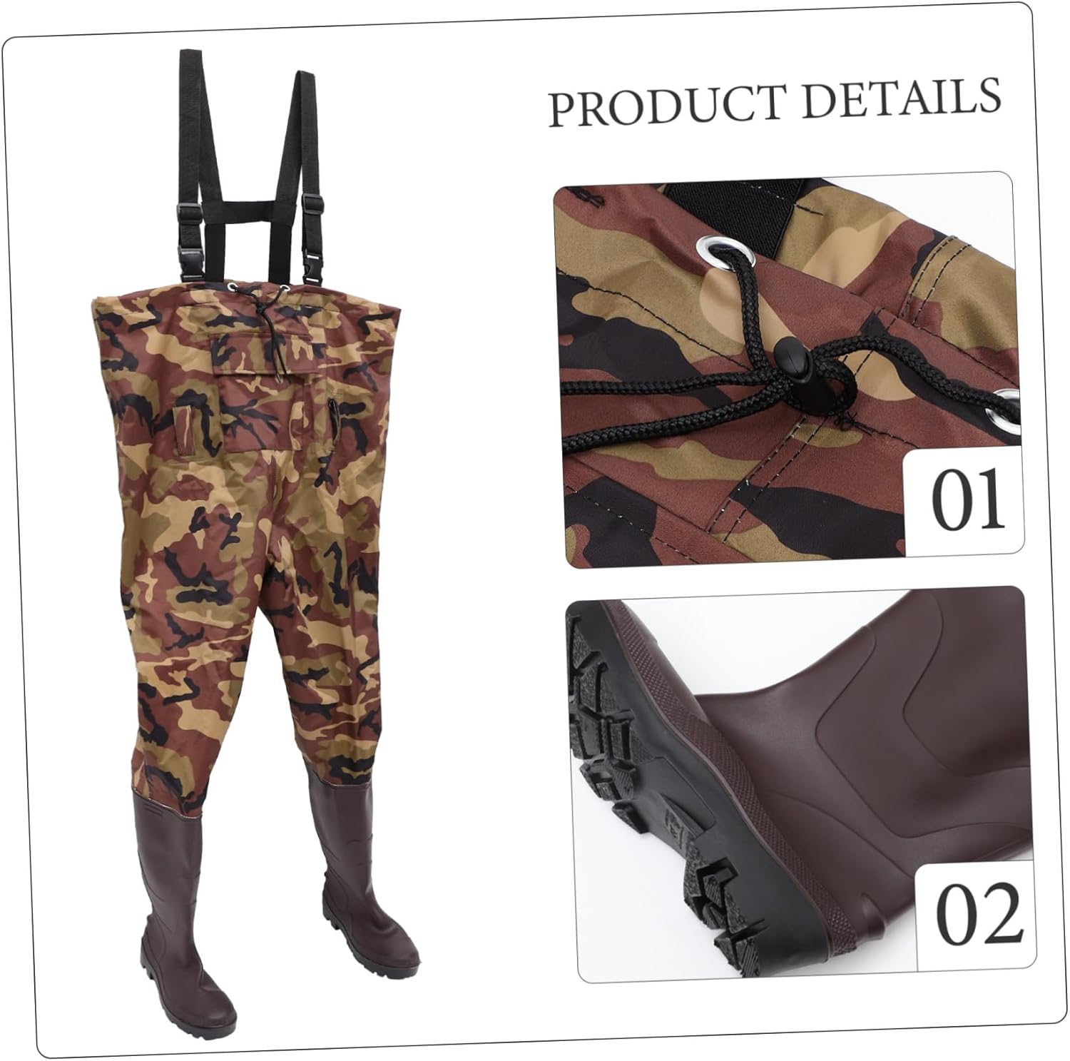 Package Include 1 x set of fishing trousers Characteristics -Material: nylon Nylon Pants -Color:Multi Fishing Suits -Size: 128.00X62.00X0.30cm/50.30X24.37X0.12in Fishing Pants Suits - It has a simple design, but very in use. It is provided you warmth and comfort as well as complete water protection Fishing Overalls Waders. - Made of material for long time and use. The adjustable suspenders and quick release buckle makes for different heights and working conditions Wader Pants with Shoe. - Due to the non-slip outsole, you wore secure grip. Special cloth design, , not easy to be torn Fishing Waders Pants. - It is lightweight for easy and convenient to carry and storage. It is suitable for heavy-duty work, such as fishing, mire, livestock farm, ploughing work, etc Fishing Wading Suits. - Easy to clean and comfortable to wear, bring much convenience to you Wader Pants.Goods InformationWaterproof Wader Suits Made of sturdy nylon with two layers of material, it can easily fit into any backpack.Watertightness Fishing Pants with waterproof boot attachment and adhesive tape joints to ensure waterproof reliability.Wader Suits You will hardly feel tired fighting with big fish! Wading pants with boot