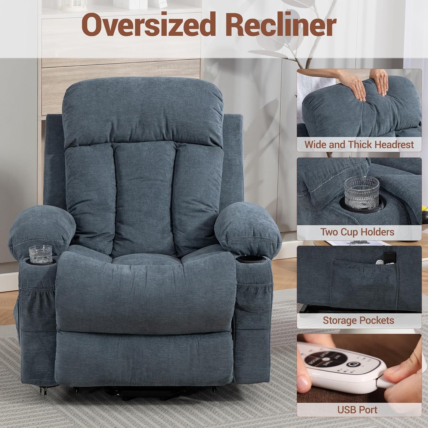 | Additional Features | Lift chair with heat and massage, Lift recliner chair, Power lift recliner, lift chair, power lift recliner chair for elderly |