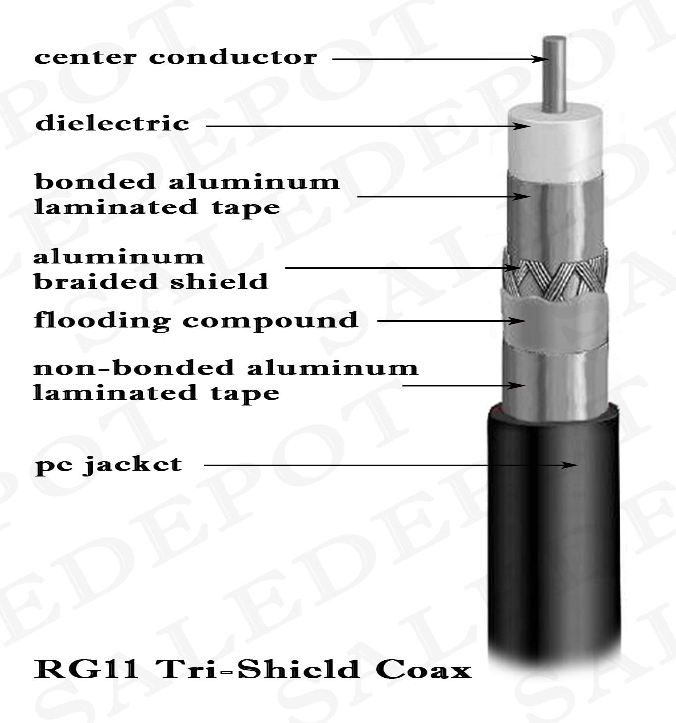 Replace RG6/RG59 you now have, which looses a lot of signal over distance, with new Triple Shielded Broadcast RG11 and get more Bandwidth. Easy to use wooden spool with length markings on the cable every 2 ft. 14 AWG CCS Core, 75 Ohm, 3Ghz Swept Tested, 77% Aluminum Braid . Jelly Coated Direct Burial RG - 11 for Moisture and Soil Acidity tolerance , so you can use it inside or outside or even bury it, and still have same steady great signal for many many years. Tri Shield low loss RG 11 Coax is ideal for Satellite , High Definition Cable TV , CATV Installs , Cable Internet , Off-Air Antenna Cabling , Short Wave Radio , Ham Radio , Electrical Sensor Devices , Long Range WiFi Antennas , Security Camera Installation , Cellular Signal Booster and all other Analog or High Frequency Digital Audio/Video Signal Transmission.