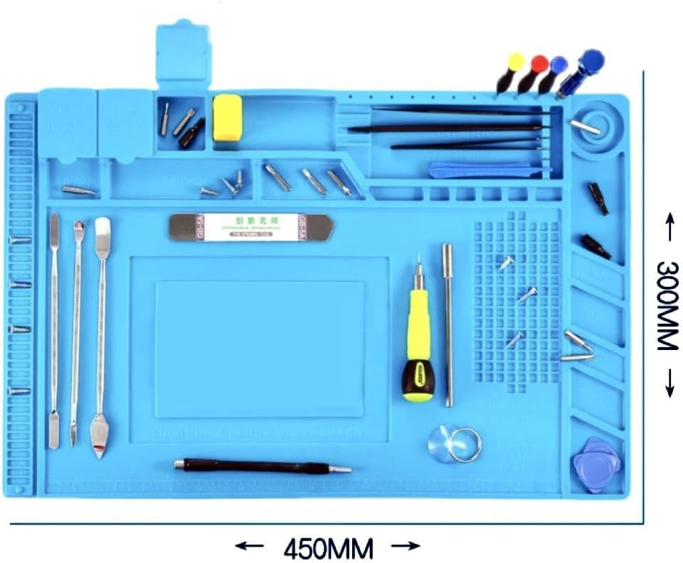 The S160 Heat-Resistant Magnetic Mat is an essential tool for professionals and hobbyists working in computer, phone, and electronics repair. Designed to withstand high temperatures, this durable mat provides a safe and heat-resistant surface for soldering, hot air gun use, and other repair tasks. Its magnetic surface securely holds small screws, components, and tools, preventing loss and keeping your workspace organized. Made from high-quality silicone and embedded with strong magnets, this mat is both flexible and durable, ensuring long-lasting performance even under demanding conditions. The heat-resistant properties make it ideal for use with hot air guns, soldering irons, and other high-temperature tools, protecting your workbench from damage. The S160 mat features a smooth, non-slip surface that provides a stable working area for delicate repairs. Its compact size makes it perfect for small workstations, while the lightweight design ensures easy portability. Whether you're repairing smartphones, laptops, or other electronic devices, this mat enhances efficiency and safety in your workspace. Ideal for technicians, DIY enthusiasts, and repair professionals, the S160 Heat-Resistant Magnetic Mat is a must-have accessory for any repair toolkit. It combines functionality, durability, and convenience, making it an indispensable tool for precision work. Upgrade your repair station with the S160 mat and experience a cleaner, safer, and more organized workspace.