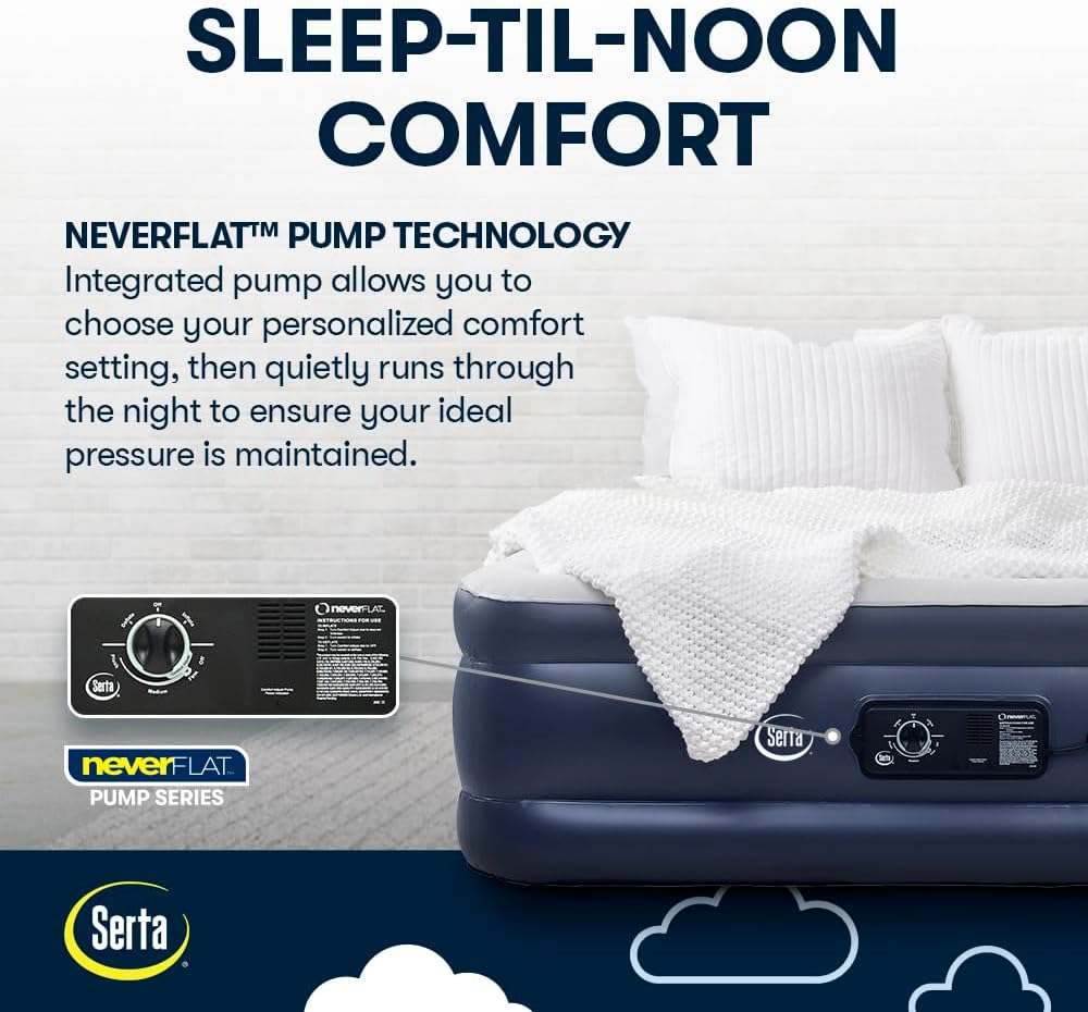 | Included Components | Serta Raised Twin Airbed with NeverFlat Pump |