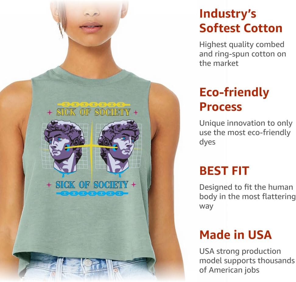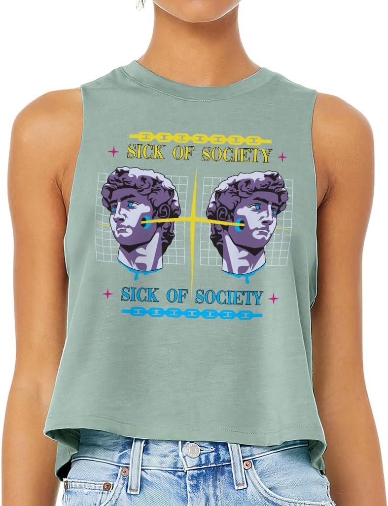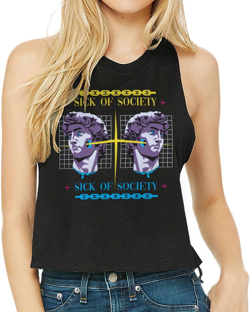 Cute and flattering Sick Of Society Racerback Cropped Tank is suitable for most indoor or outdoor activities, such as gym, yoga, running, hiking, beach or relaxing around the house. Pair Great Gifts with your favorite sports bras, especially strappy ones, and high-waisted leggings, then you will enjoy cool and comfortable exercise throughout the summer.