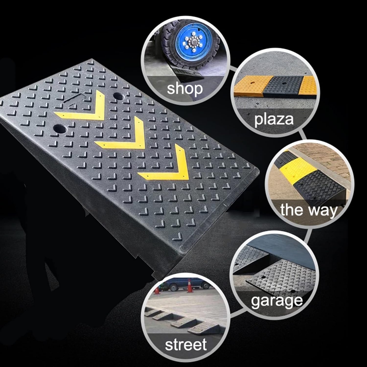 Our curb ramp is designed for helping heavy equipment climb steps with ease without causing damage to tires or other parts, such as the base of cars.The special texture design of the surface increases the friction and prevent skidding. The driveway gutter curb ramp is safe and reliable for people and vehicles.The threshold ramp is suitable for wheelchairs, mobility scooters, power wheelchairs and walking aid.Portable automotive ramps with a rugged and structural designPlace them on the pavement to bridge the differences in height from the road and to ensure easy movement of vehicles.The grid design removes excess weight while providing support to prevent sagging.The Curb Ramp is an efficient way to get cars, trucks, carts, tractors, or other wheeled vehicles over a curb or step.This ramp is built to last.The curb ramp, easy to install, pre-drilled mounting holes, you can simply install it. Usually used as curbs, domestic steps and garage steps.SpecificationsColor: blackProduct-Size: 50*80*10 cm (19.6*31.4*3.9 inch) , 50*80*11 cm (19.6*31.4*4.3 inch),50*80*12 cm (19.6*31.4*4.7 inch), 50*80*13 cm (19.6*31.4*5.1 inch), 50*80*14 cm (19.6*31.4*5.5 inch), 50*80*15 cm (19.6*31.4*5.9 inch), 50*80*16 cm (19.6*31.4*6.2 inch), 50*80*17 cm (19.6*31.4*6.6 inch)