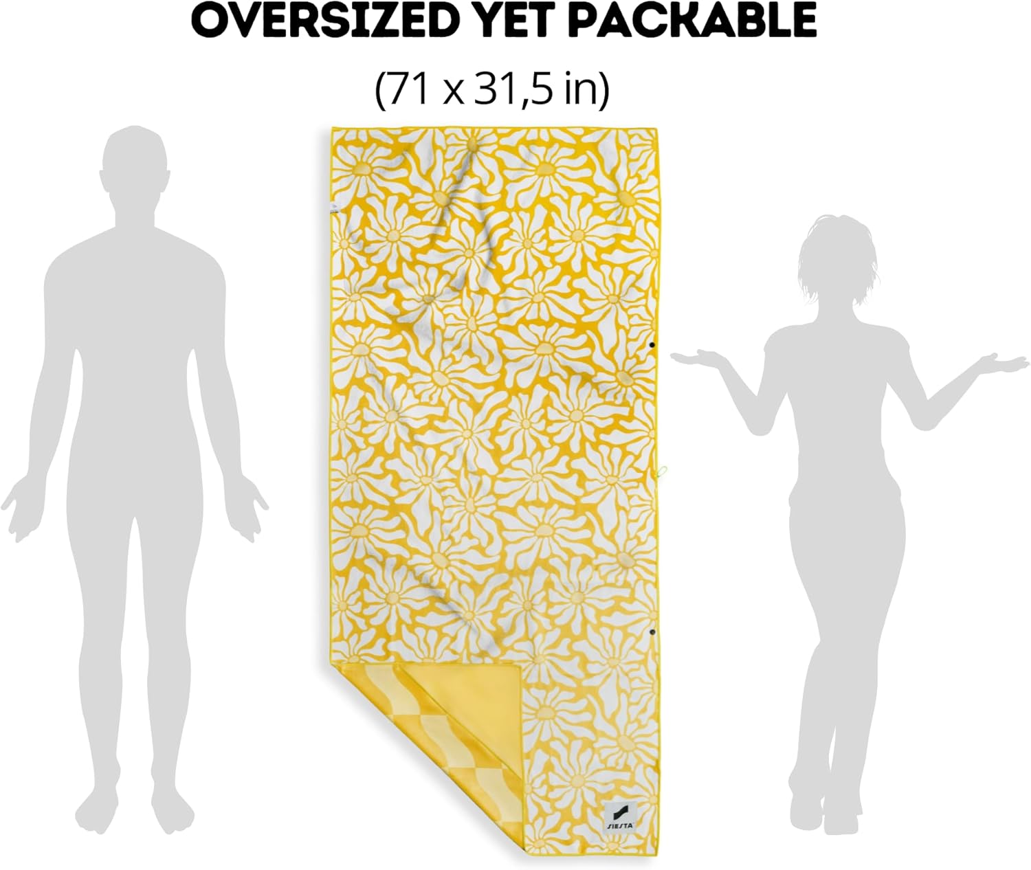 Lightweight, absorbent, and oversized, this beach towel is specially designed to accompany you through all your outdoor best moments, bringing you comfort and functionality wherever you go. Its high-quality microfibre fabric not only ensures quick drying, but also offers an incredibly soft and pleasant feeling against the skin, making it the perfect choice for those looking for comfort and practicality. This towel is ideal for covering up after a swim in the pool or a refreshing dip in the sea. Its compact and lightweight design makes it easy to carry, allowing you to take it with you on any adventure without taking up excessive space or weight in your backpack or bag.