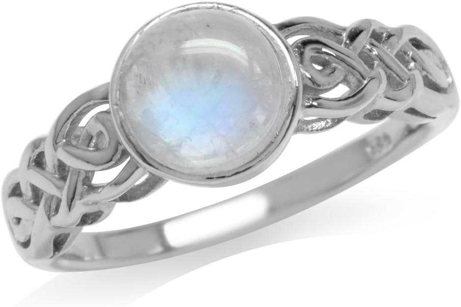 Silvershake 7MM Round Shape Gemstone White Gold Plated or Yellow Gold Plated 925 Sterling Silver Scroll / Filigree Celtic Knot Braided Solitaire Ring Jewelry for Wo