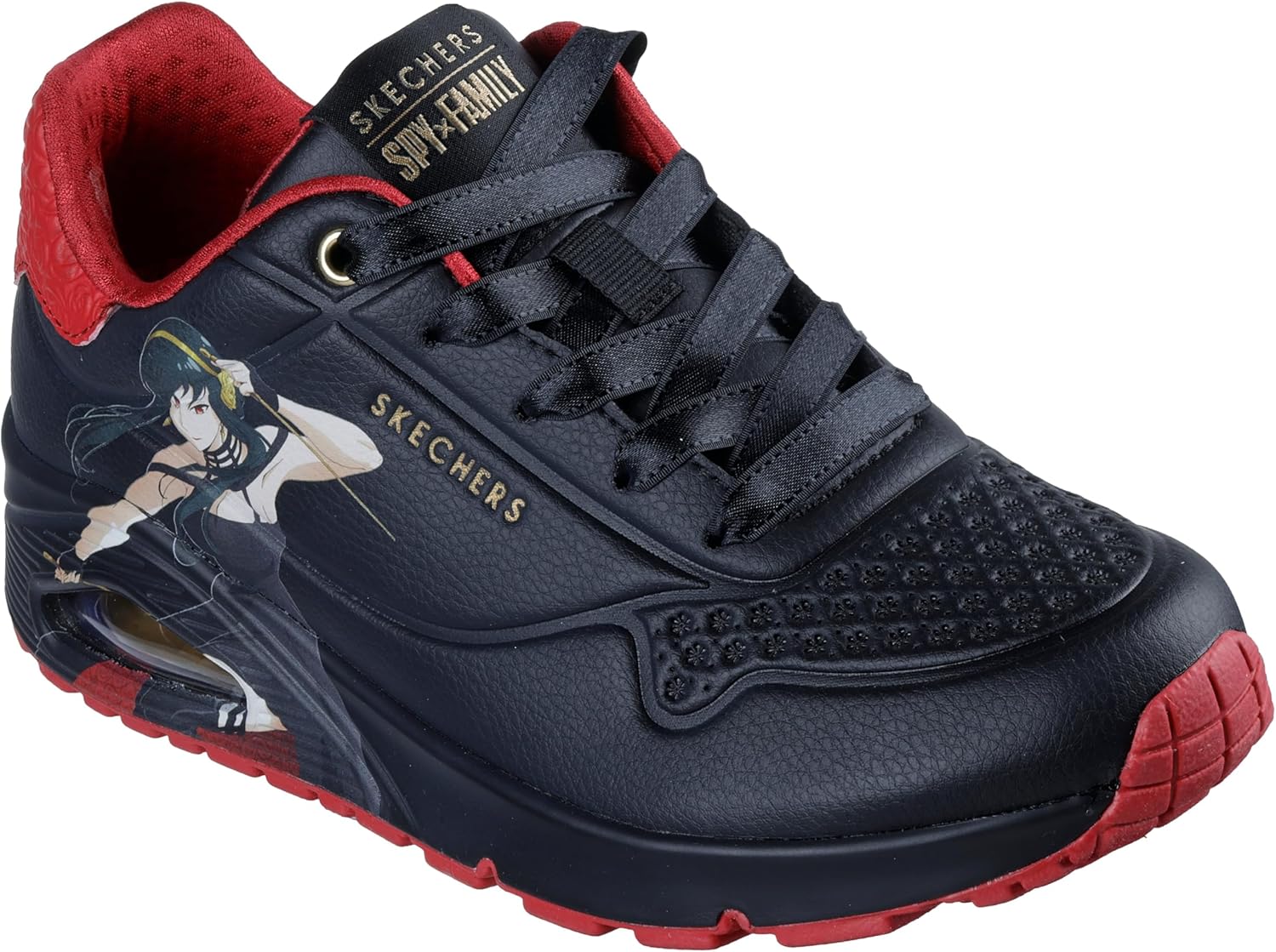 Step into the world of SPY x FAMILY with this exciting Skechers collection -- footwear inspired by the hit anime series! Go all out in Spy x Family style and Skechers comfort with the must-have Skechers Street Uno - Spy Family Air . An essential for any fan, this lace-up fashion sneaker features fun graphics on a duraleather upper, and a cushioned Skechers Air-Cooled Memory Foam insole.
