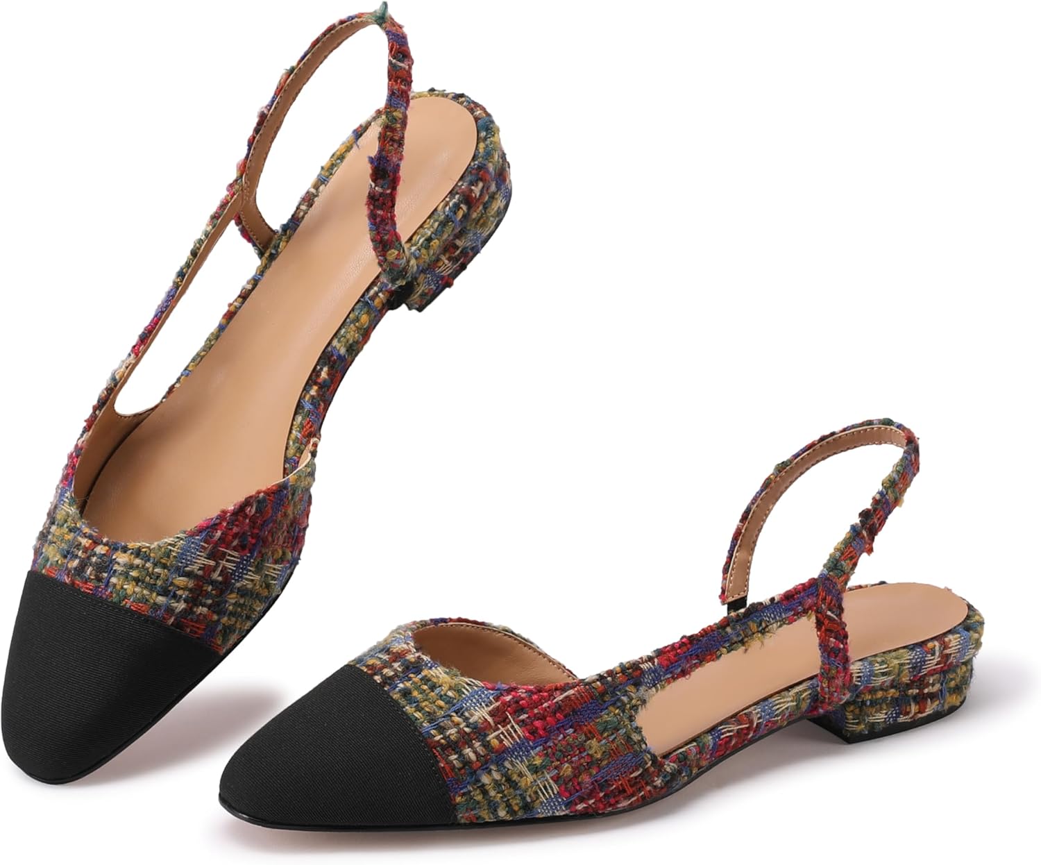 These slingback pumps are the perfect addition to any shoe collection, offering a trendy yet classic design that is suitable for various occasions. These shoes feature a charming two-tone color scheme that adds a touch of elegance to your overall look. With a comfortable 2.5" chunky heel, these slingback heels strike the perfect balance between style and comfort, allowing you to confidently conquer long office hours or social events without compromising on your well-being.Whether you're attending meetings, conferences, or simply working at your desk, these shoes exude sophistication and professionalism, enhancing your overall appearance. Additionally, the slingback strap offers a secure and adjustable fit, ensuring that these pumps stay in place throughout the day while providing optimum support and comfort. No more worries about your shoes slipping off or causing discomfort during busy schedules! These office shoes boast a timeless design that seamlessly complements various outfits, from tailored suits to elegant dresses or even casual ensembles.
