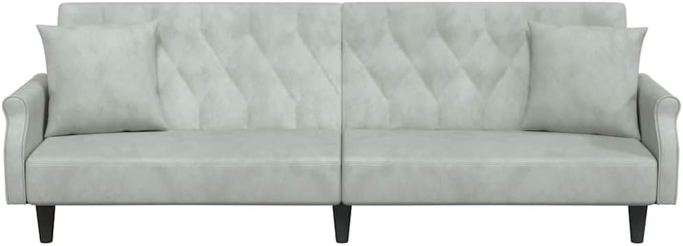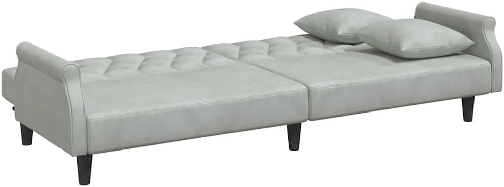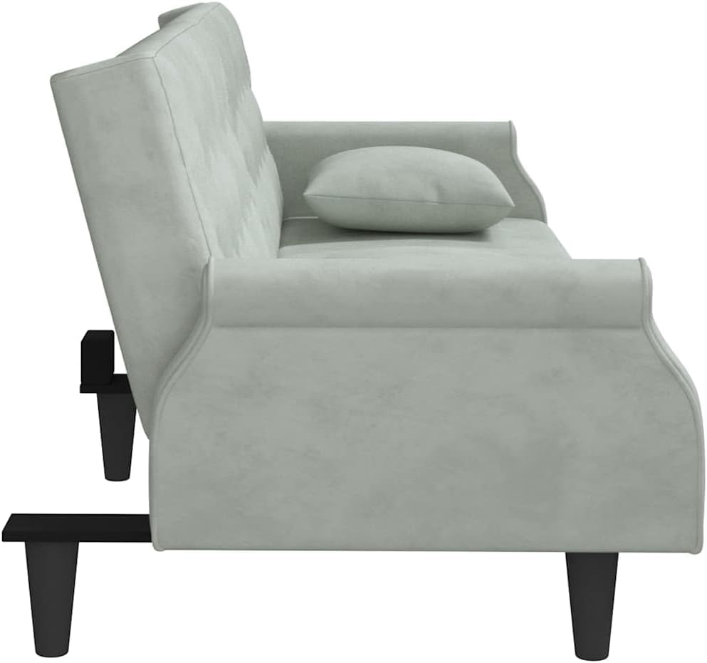 This Light Grey Velvet Sofa Bed mixes modern style with practicality. It’s a perfect addition to any living space. With its sleek design, the sofa offers comfy seating that easily changes into a bed, making it both stylish and functional for your home.Convertible Design: The sofa bed transforms smoothly from a stylish couch to a comfy bed, perfect for last-minute guests. Its compact shape fits tight spaces while being super useful.Luxurious Velvet Upholstery: Covered in soft-touch velvet, this sofa offers a plush, inviting feel, spicing up your living room or bedroom. This fab fabric looks posh and is easy to keep clean.Customizable Armrests: With adjustable armrests, this sofa meets your comfort needs. Whether you're chilling or lying down, you can get comfy just how you like.Spacious Seating Capacity: Fits up to 2 people, this sofa’s great for shared spaces. With room for family and friends, it’s perfect for entertaining or just chilling.Sturdy Build: Built with a tough plywood frame, this sofa bed's made to last. Its matte finish gives it a stylish edge, making it a standout piece in your home.Colour: Light Grey Shape: RectangularMaterial: Farbic VelvetFinish: Matte Indoor/Outdoor: Indoor OnlyCover Included: NoRoom: Living RoomCapacity: 2 people when extendedMaximum Number of People: 2Maximum Weight: 110 kgDimensions: 100 x 216 x 48 cm (W x L x H)Min-Max Dimensions: 18.9/27.6Leg Height: 15 cmWeight: 25 kgSeat Depth: 55 cmSeating Capacity: 3Swings: NoDelivery Contains: 1 x Sofa bedAssembly Required: YesRecommended Number of People for Assembly: 2SKU: 351944