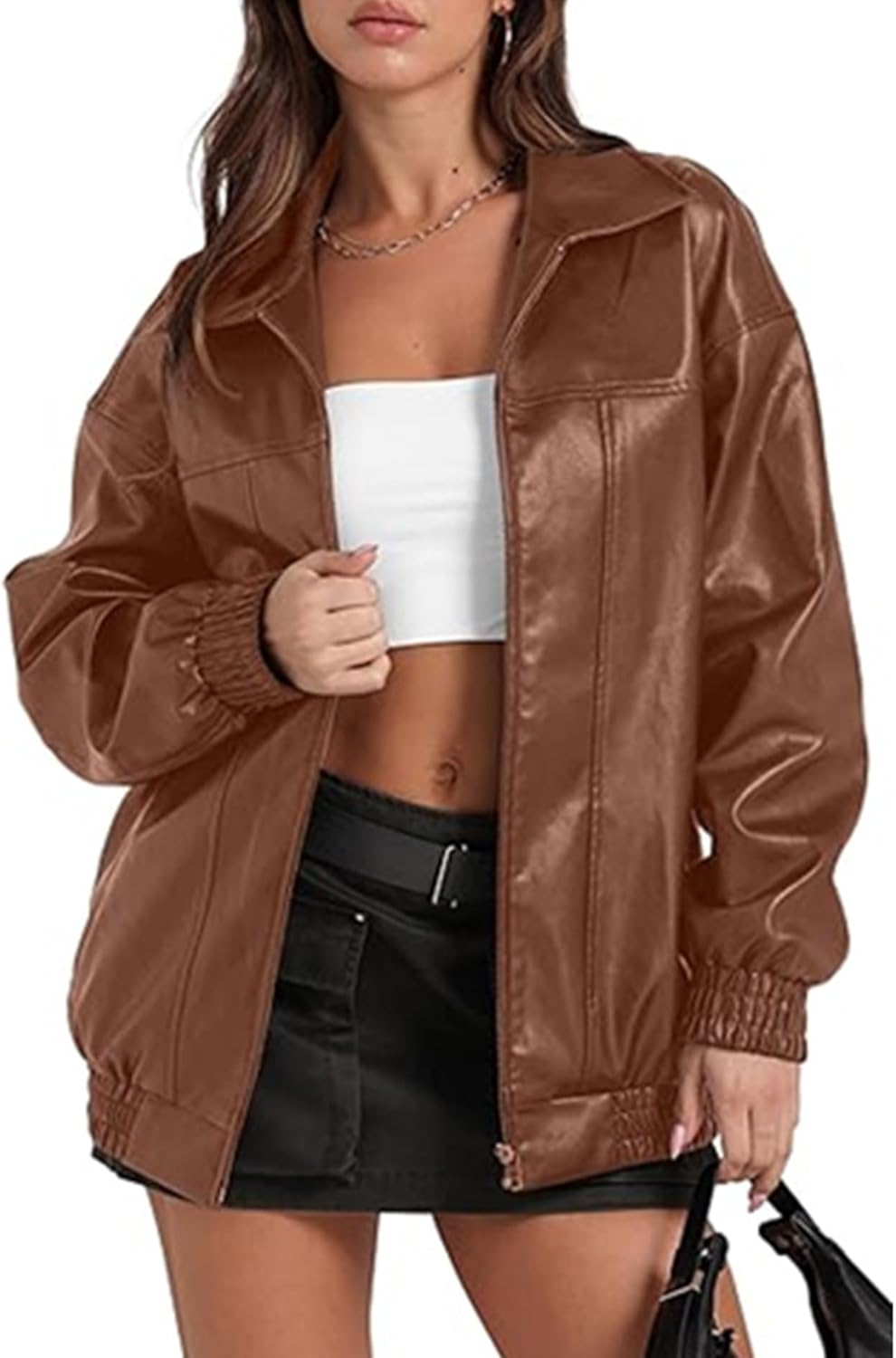 Womens Leather Jackets Oversized Zip Up Long Sleeve Faux Motorcycle Moto Biker Coat Fall Outfits Fashion Clothes