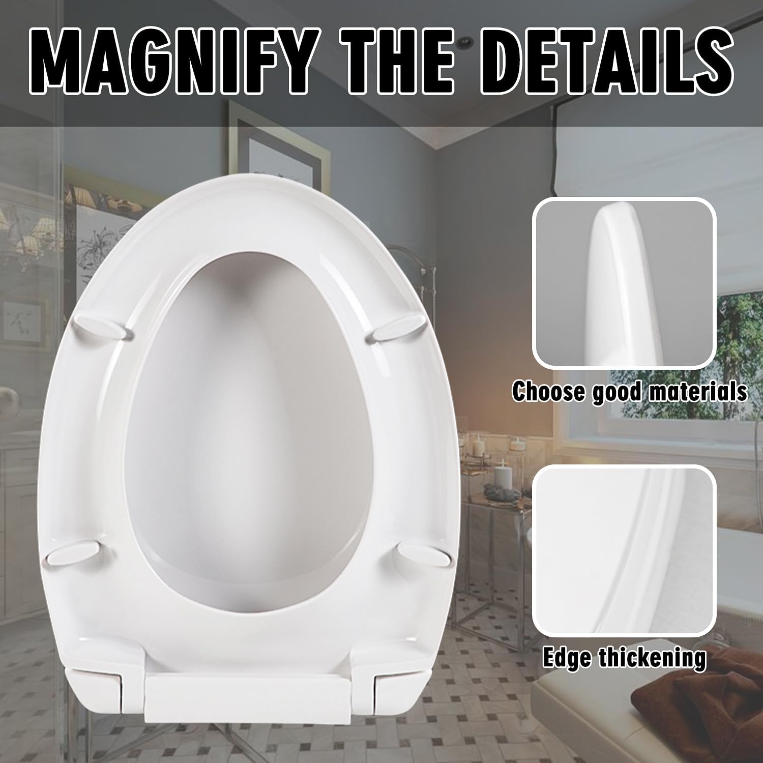 Product Name: elongated softclose toilet seat Material: Constructed from high-impact gloss polypropylene Compatible Models: Compatible with TOTO SS1144#01/SS115/SS154/SS204 Toilet Seat Applicable:Most standard elongated soft close toilet seat Improve your bathroom with our premium elongated soft close toilet seat, designed to fit most standard elongated soft close toilet seat,Compatible with TOTO SS1144#01/SS113/SS154/SS224/SS204 toilet seat.Measuring 18.5 inches long, 13.78 inches wide, this toilet seat is the perfect upgrade for your bathroom. Please measure your toilet before purchasing to ensure the proper size. Four non-slip bumpers ensure stability, holding the seat securely in place, eliminating any wobbling, shifting, or slipping. Enjoy a comfortable and safe experience every time you use it. Extended closed front toilet seat and cover with slow-down hinges,Enjoy a whisper-quiet, slow-closing feature that prevents banging, increases safety and reduces noise disturbance in your bathroom For added convenience, the seat comes with all necessary mounting hardware, including options for bottom mounting using white plastic screws and top mounting using black insert expansion metal bolts. Rubber pads are also included to prevent hinges from slipping. Elevate your bathroom experience with this Extended Soft-Close Toilet Seat. Enjoy the convenience, durability, and comfort it offers. Don't miss out on this essential bathroom accessory. Order now and transform your bathroom into a haven of relaxation and style.