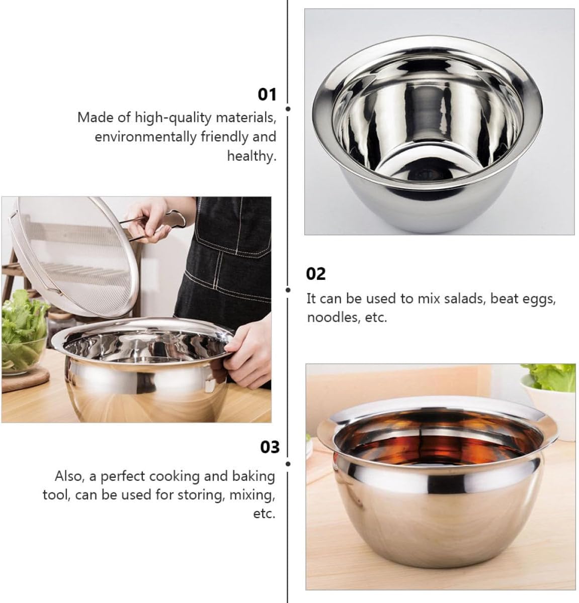 Package List 1 x oil storage basin Characteristics -Color: Silver -Size: 26.80X26.80X15.80cm/10.53X10.53X6.21in -Product Info:304 stainless steel oil drum -Material: Stainless steel - It has of capacity, don't have to worry about splashing when you stir it Multi-functional Bowl. - The design is unique, and it can also be used to knead noodles and beat eggs Household Bowl. - The excellent workmanship of our product will bring you a Salad Holder. - It has a wide range of uses and can be used for storing salads, or washing fruits, etc Kitchen Bowl. - The rim of the bowl is smooth and the workmanship is meticulous Salad Bowl.Goods DescriptionEgg is really helpful for our kitchen using, you are deserved to get it.Salad Holder It is easy and convenient to clean and wash.Egg-beating Bowl Its large capacity can make the food not easy to out.Stainless Steel Bowl This stainless steel basin has a smooth surface
