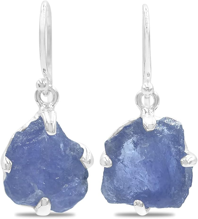 Starborn Rough Gemstone Prong-set Drop Earrings in 925 Fine Starling Silver