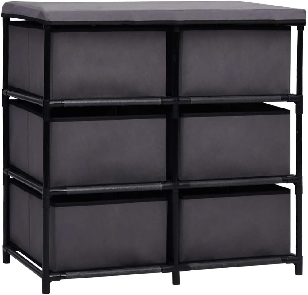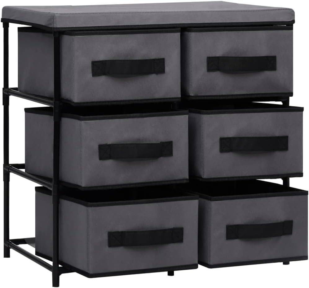 Our storage cabinet, with a simple yet stylish design, is meant to be the focal point of your living area, lounge room or bedroom.This free-standing cabinet is perfect for maximizing storage space and keep your room clean. With 6 drawers, this drawer cabinet has ample storage space for organizing different files. This drawer chest is made of fabric, making it easy to clean and lightweight. Additionally, this item can also be used as a side cabinet, storage cabinet, end table, end cabinet, etc.Color: GrayMaterial: Steel and fabricOverall dimensions: 21.7"x11.4"x21.7" (W x D x H)Each drawer dimensions: 11"x9.8"x5.9" (L x W x H)With 6 drawersAssembly required: Yes