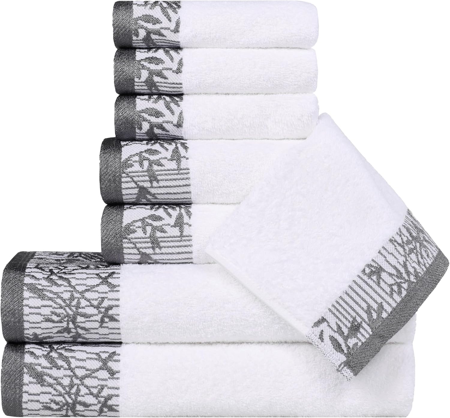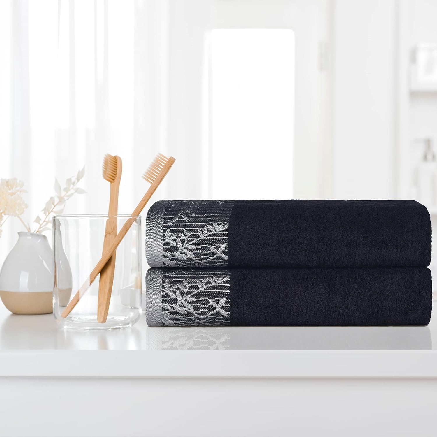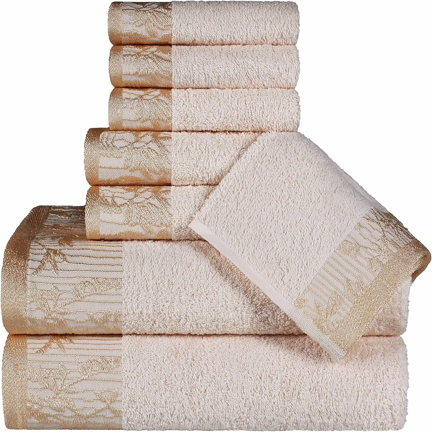 Complete the look of your bathroom with the Superior Cotton 4 Piece Towel Set. Crafted from a premium Cotton construction for comfort and durability, each towel provides a versatile absorption, perfect for the shower, bath or beach. The pattern is a unique solid color towel with a coordinating floral jacquard border design that will match with any Traditional, Vintage, Bohemian, or Modern space.
