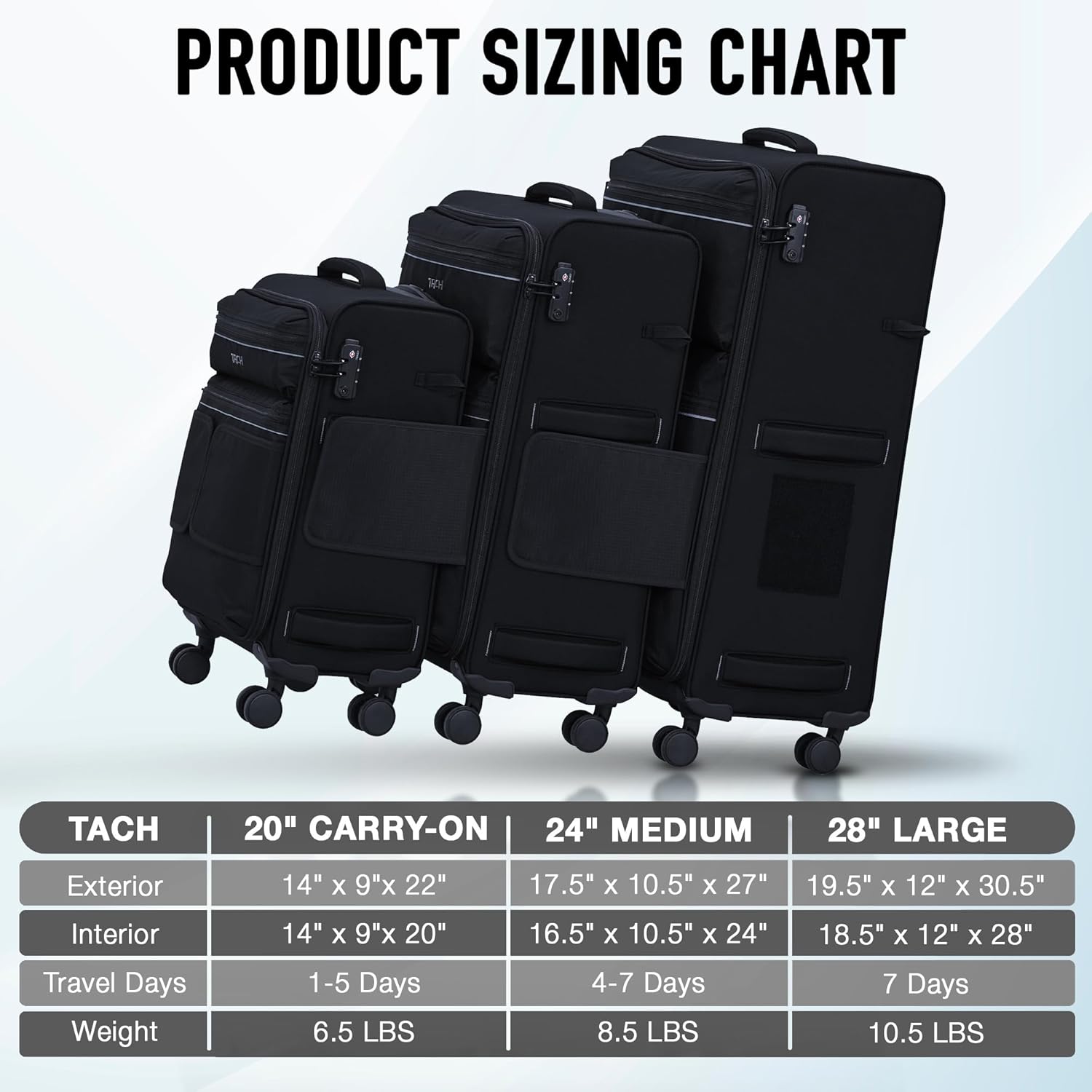 TACH Samba Soft Connectable Carry On Luggage 22x14x9 | Carry on Luggage with Spinner Wheels & Patented Built-In Connecting System | One Piece Rolling Suitcase Links 6 Bags At Once (Black)