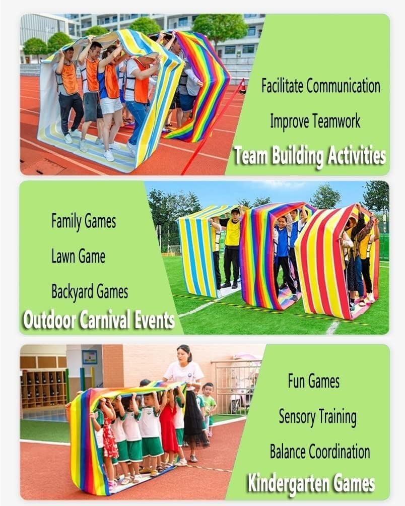♥ Features:- Run the mat a roll mat game. In the game the game requires teamwork and coordination in order to keep the Tour Team running and your yoga mat rolling- Wear-resistant oxford cloth wear-resistant folding and safe. Waterproof easy to fold easy to store- Exquisite workmanship beautiful color stripes rainbow colors . Applicable to the group game rolling mat race. - This activity can enhance sensory response exercise coordination ability and balance ability. It can improve sports ability and courage can enhance team awareness.- Used for picnic day active game balance and flexibility jump bag and game team building and collaboration obstacle course training tool children's growth group work etc.♥ Specification:- Material: Polyester oxford cloth- You will get: 2pc runing mat- Advice purchasing more runing mat for team game