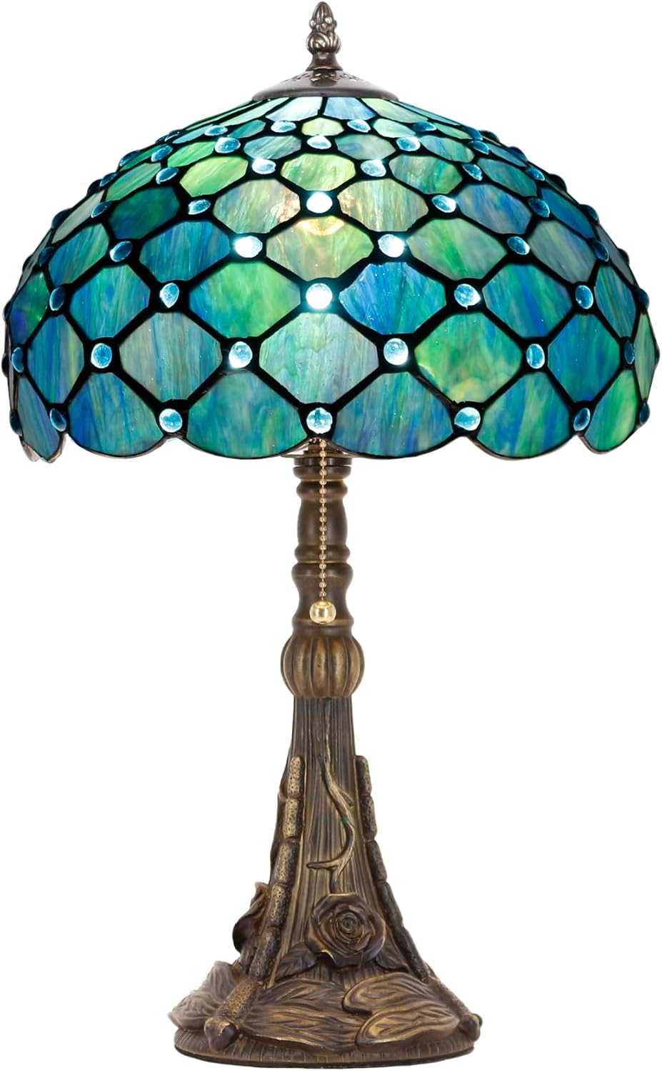 Tiffany Lamp Stained Glass Table Lamp 12X12X19 Inch Resin Base for Desk Bedroom Living Room Reading Light (Sea Blue Pearl)
