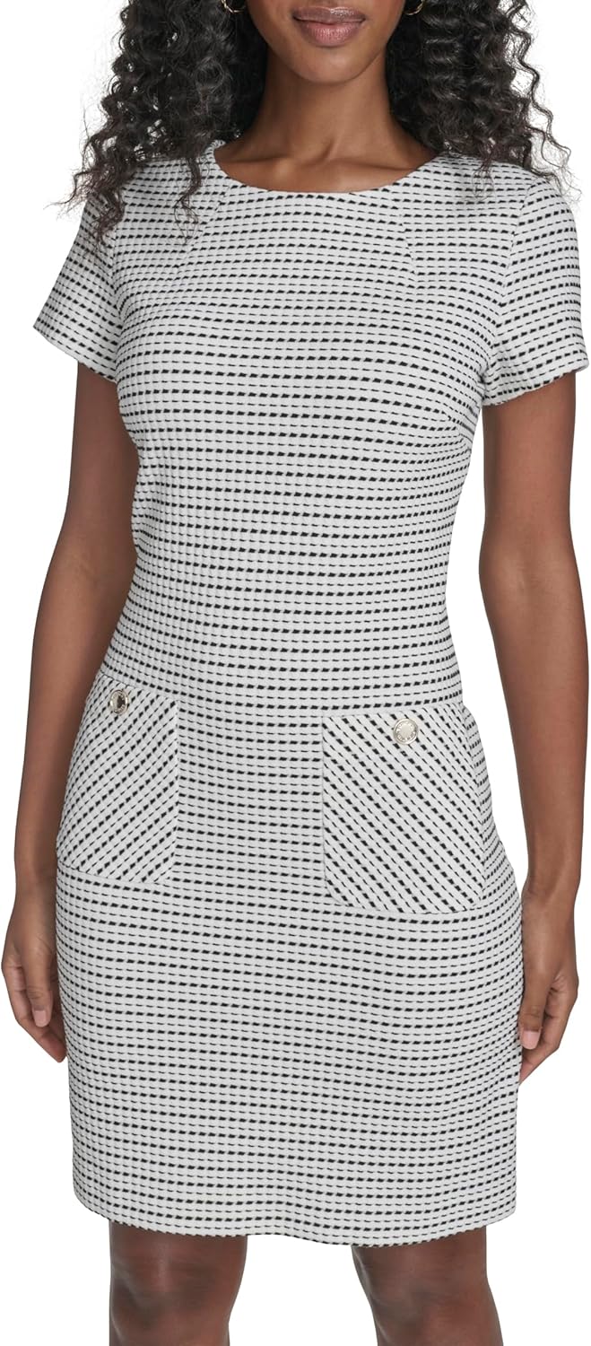 This Tommy Hilfiger Women's Dress is a Cap Sleeve Striped Textured Knit Shift Dress