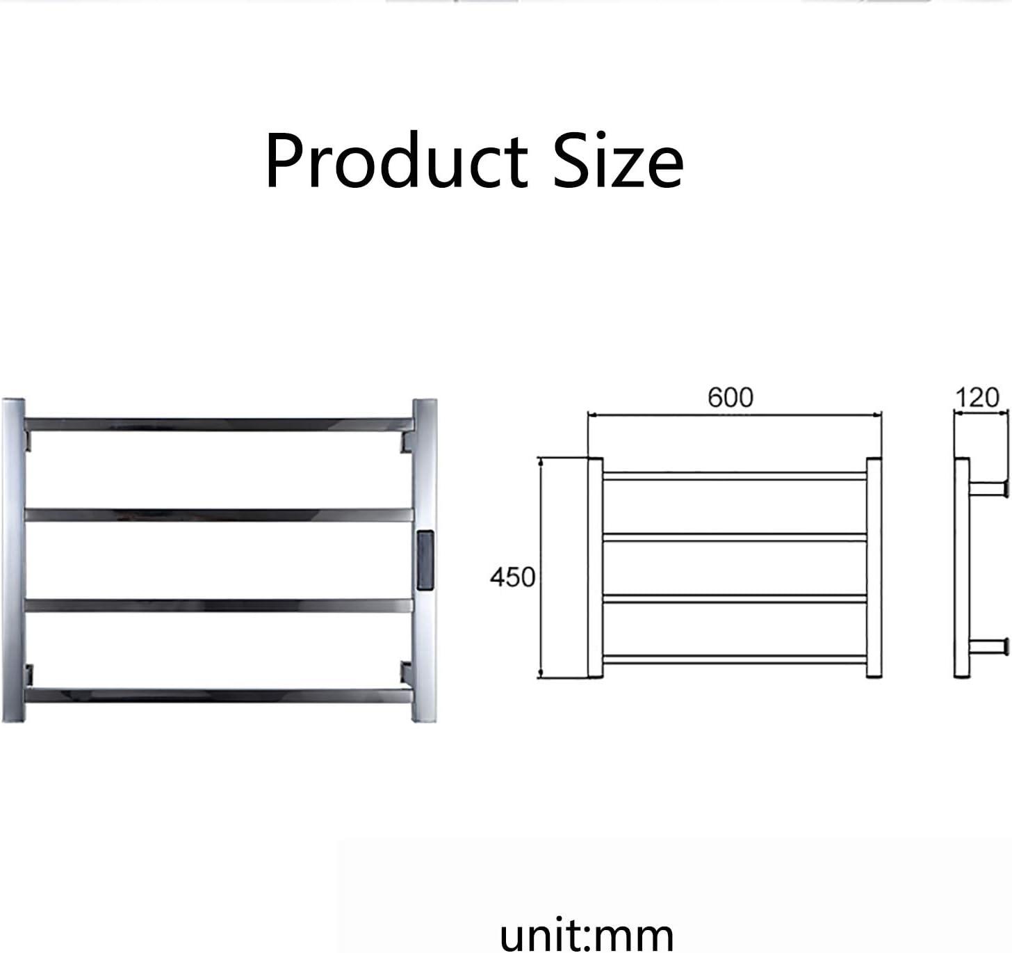 Decorate your home. Beautify your lifeIf you decorate it just right in terms of functionality and aesthetics, you can transform your bathroom into a real spa, where you can relax after a long day and enjoy a hot bath in a warm and cozy atmosphere.Specification:Product Name: Electric towel warmerStyle: ModernColor: PolishingMaterial: 304 stainless steelFeature: with digital displayProduct Size: 600*450*120 mm(23.6×17.7×4.7 inch)Main Functions: Dry, constant temperature, waterproof, high temperature resistantVoltage: 110V-240V(According to the country of the customer)Power: 68WFrequency: 50HZHeating Time: 5 minutesWorking Temperature: 45-70 °CWaterproof Rating: IP56Wire Type: Length 1.2MHeated Towel Bars Offer These Benefits:● They dry towels more rapidly, keeping them fresher.● They provide a soft ambient warmth in your bathroom.● Gently dry delicate clothing and swimwear.● Accelerate drying of wet outerwear, such as coats and gloves–making towel warmers worth considering for mud rooms and laundry rooms.Prompt:★ Since the size is measured manually, there is a 1-3 mm error. Please refer to the actual product.★ The picture is the actual product. However, slight chromatic aberrations may occur due to different lighting and display settings.We wish you enjoy life!