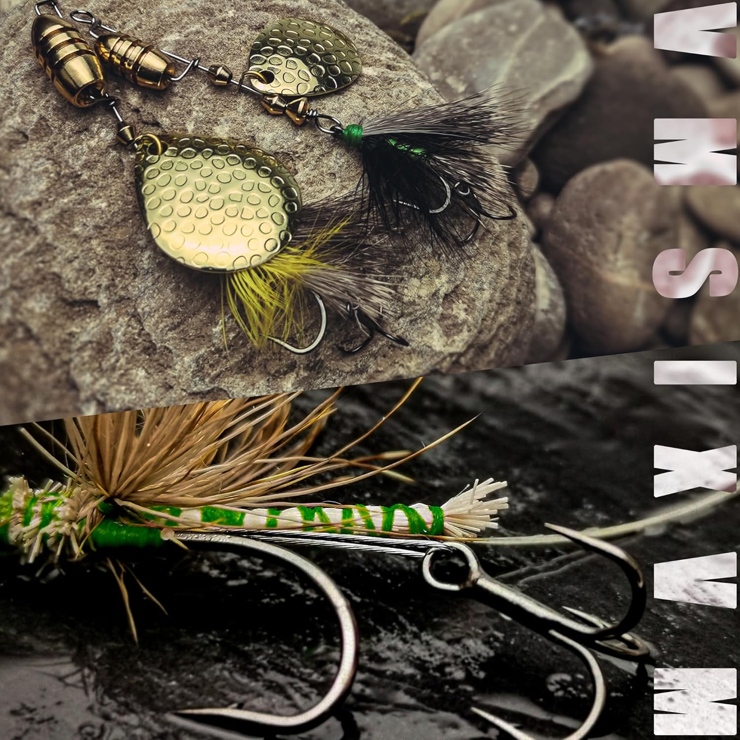 Quantity: 6/12 Pack | Style: VMSIXVM Deadly Spinner-Fly Combo Kit Material:Brass, Stainless Steel | Skill Level: All-level, Beginner, Intermediate, Professional VMSIXVM Deadly Spinner-Fly Combo Kit, A True "go-to" Lure for Any Species!!! VMSIXVM combine the hottest flies on the market with the irresistible movement of a spinnerbaits. The hand tied fly represents a favorite food source will causes an instinctive strike. Polished spinnerblade creates a flash which grabs the trout attention. The sharpest double hook works in tandem with the main hook to yeilds a firmly hooked fish. Brass Componentry Trout Lures A solid brass componentry,brass spinner blade,polished brass bead and a brass spinner blade clevis are all on a stainless steel shaft. VMSIXVM fishing spinner is hand-crafted and features a quality fly pattern hand-tied to the sharpest steel hook. These rooster bait tails also have a double hook as a trail hook to reduce snag, provoking predator fish to strike. Try Them Right Now VMSIXVM fly fishing flies kit feature proven fly hook patterns to match natural food sources, making them versatile and effective for a wide range of fishing situation.These rooster bait tails also have a double hook as a trail hook to reduce snag, provoking predator fish to strike. In short, if you want to take your fishing game to a new level, you need the VMSIXVM deadly spinner-fly combo. These baits are easy to use, versatile, and very effective at enticing, hooking, and landing a variety of fish. Try them today and see the results for yourself!!! VMSIXVM Fishing Lures, You Deserve a Better Fishing Life!!!
