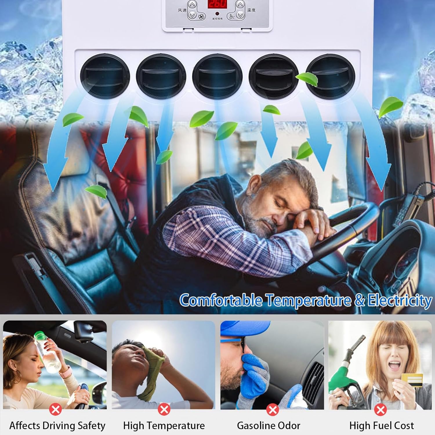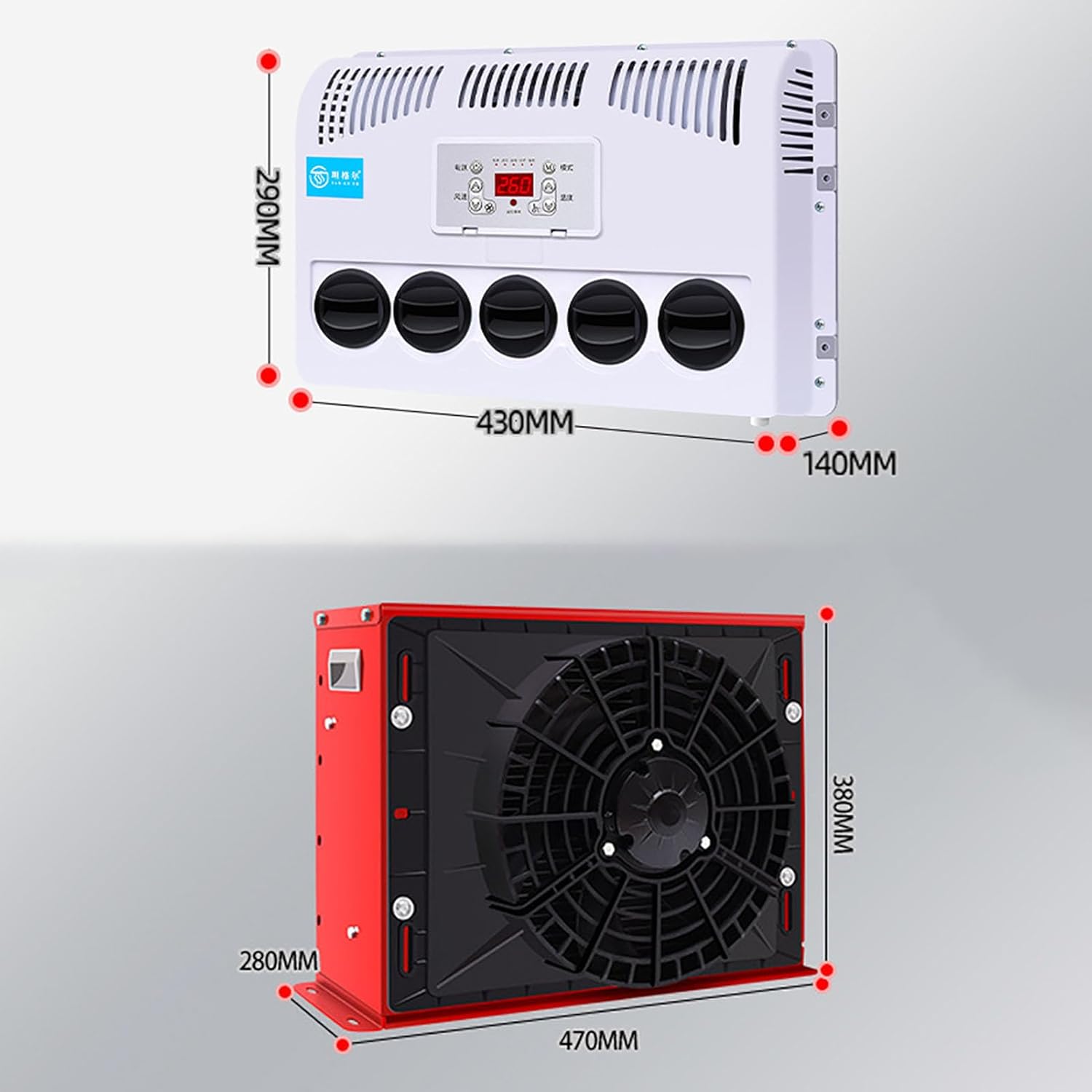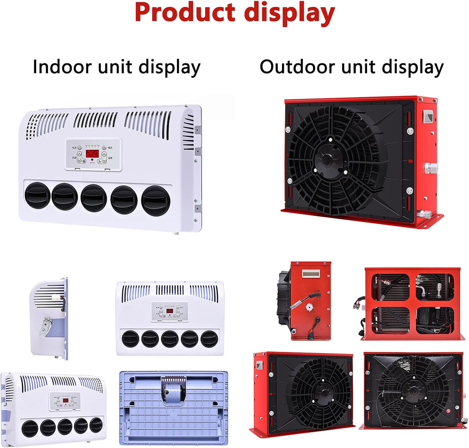 ▲ Specification- Voltage: 12V/24V- BTU: 10000- Mounting Style: Screw-On- Type: Split AC Air Conditioner- Power: 400-600W- Cooling Capacity: 2200-2400W- Rated Current: 30-50A- Air Volume: 250-450m³/8828.68-15891.6ft³/h- Refrigerating Fluid Type: R134A- Refrigerating Fluid Volume: 600g- Refrigeration Oil: POE68- Control Method: Remote Control- Motor Type: Pure Copper Wire Motor- Outdoor unit size: 530*400*210mm (19kg)- Indoor unit size: 455*355*165mm (6.5kg)▲ Package:(sent by 2 package)1.Air conditioner outdoor unit2.Air conditioner indoor unit3.Power cord(connect on outer unit)4.High-voltage pipe5.Low-voltage pipe6.Tape7.Mounting bracket8.Remote control9.Drain pipe10.Screw accessoriesPlease note,the refrigerating R134A NOT INCLUDED