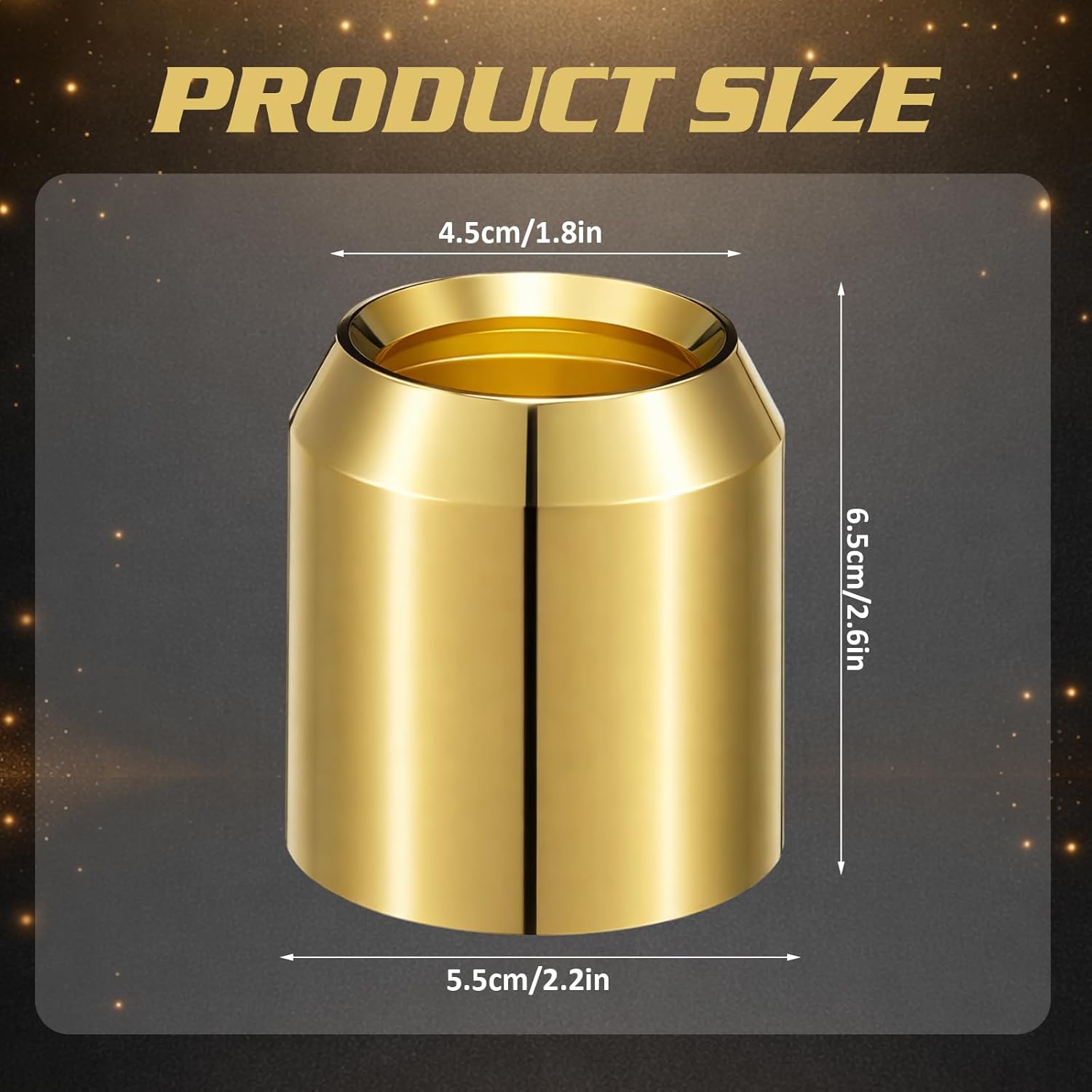 Features: Meticulous craftsmanship: Attention to detail is our promise. Each brass candle follower undergoes careful assembly and surface treatment to achieve high standards. The precision engineering ensures your product isn't just a purchase. It's an investment in quality and style Value packed bundle: With 2 candle followers in every package, you receive added value for larger setups or repeated use. This bundle specifically caters to multiple requirements, embodying affordability without compromising on quality Specifications: Material: aluminum alloy Color: gold Size: 2 x 2.36 inches/ 5.08 x 6 cm Package includes: 2 x Candle followers Notes: Manual measurement, please allow slight errors on size. The color may exist a slight difference due to different screen displays