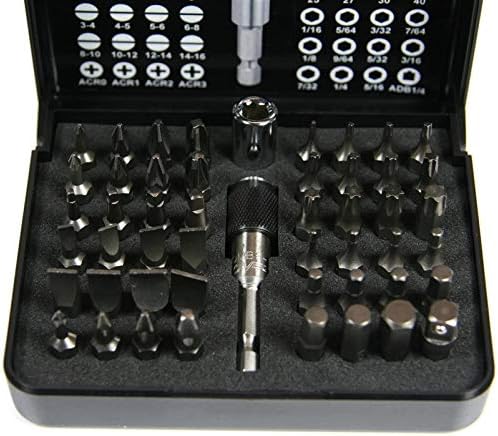 Quality 50 Piece Industrial Driver Bit Set with standard bits. 50 Standard Industrial Bit Tips with a quick release bit holder and a socket adapter for 1/4" bits. Made from S2 modified shock resistant steel for professional performance and durability. Proprietary precision CNC machined tips for excellent fit in fastener recess. Durable heavy duty drop resistant case. Magnetic quick release bit holder included.
