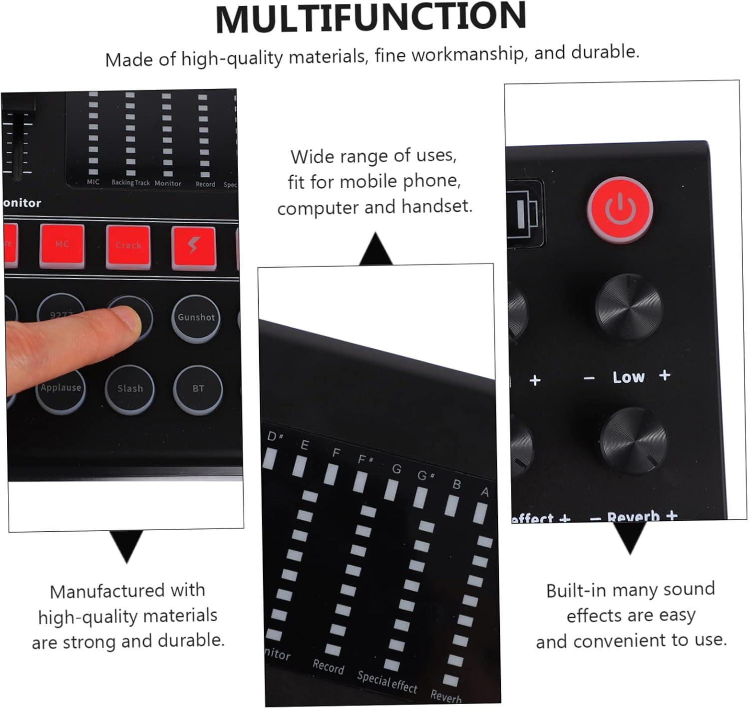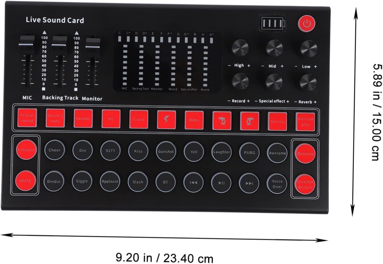 Package List 1 x sound mixer Features - Color: Black Phone Sound Cards. - Material: Plastic Sound for Live Streaming. - Size: 23.40X15.00X4.50cm/9.20X5.89X1.77 inch Sound Cards. - The real-time ear-back monitoring allows you to adjust the rhythm in entertainment or practice, avoiding the embarrassing experience External Sound Cards. - Manufactured with materials are strong and durable Live Sound Cards. - Built-in many sound effects are easy and convenient to use Voice Changer. - for streamer and broadcast to do live show, make you whit this live sound cards Computer Voice Changing Tool. - Wide range of uses, fit for mobile phone, computer and Mobile Phone Sound Cards.Goods DescriptionPhone Sound Cards It is one of for you.Mobile Phone Sound Cards Are you looking for a , yet live recording sound cards? Are you in search of a sturdy, trustworthy tool that can do multiple jobs at once? , ! Our live recording sound cards must meet your needs