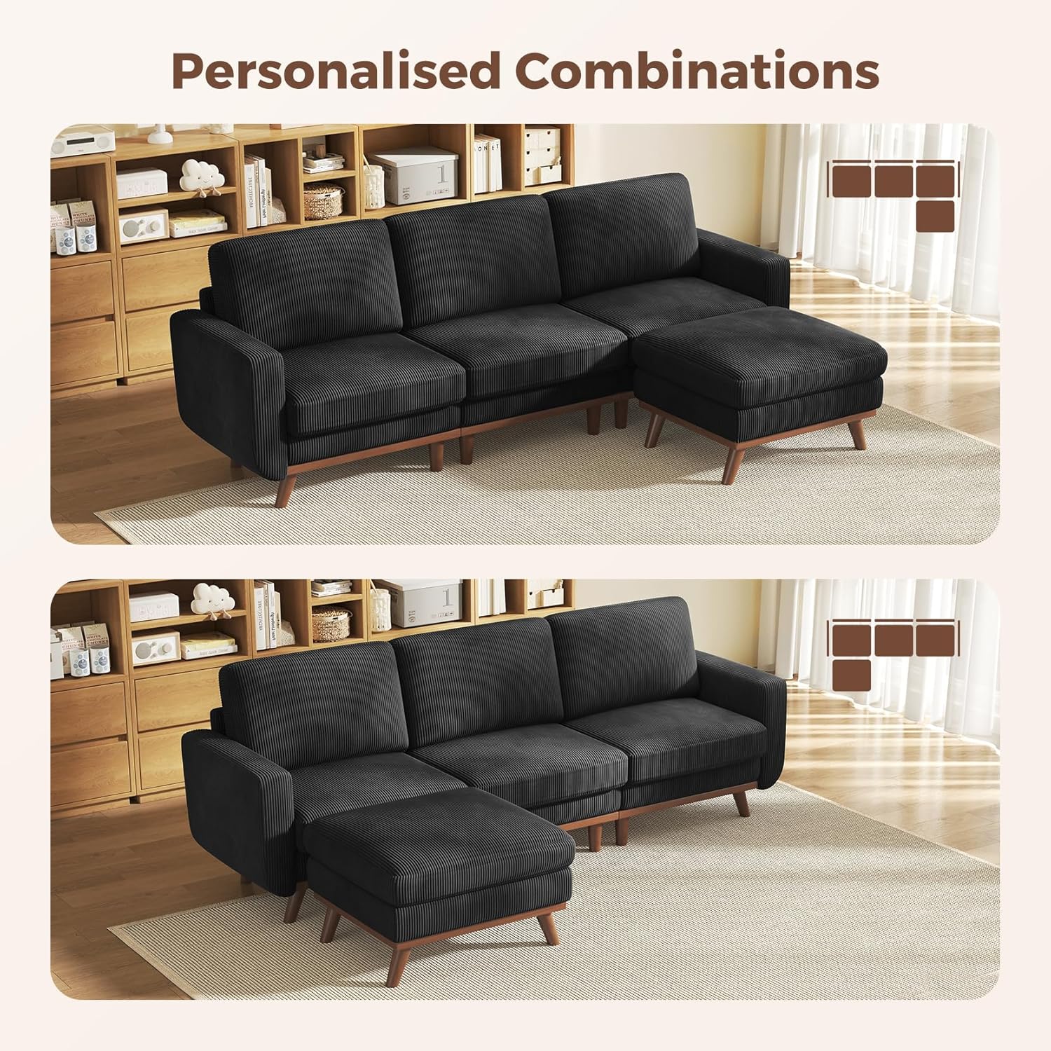 | Color | 97" - 3 Seater & Ottoman Black |