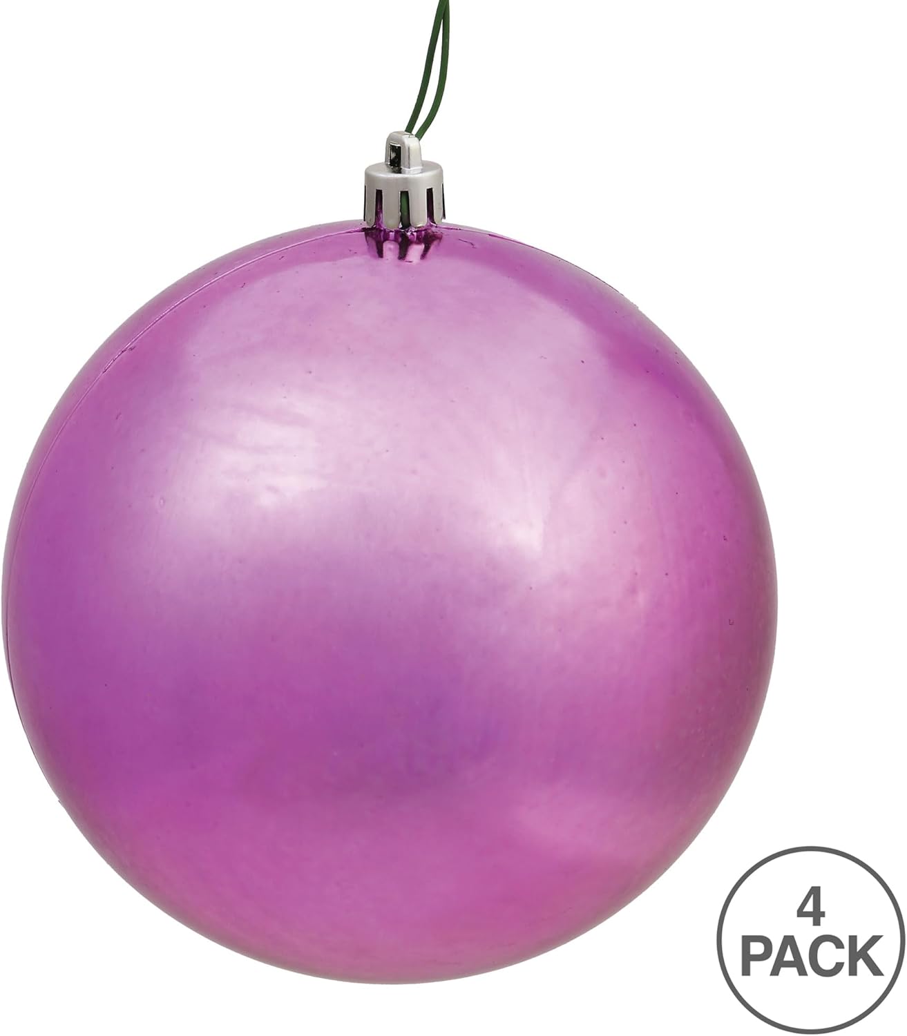 Vickerman 6" Red Shiny Ball Ornament. This ornament features a shiny finish that will add gloss to any holiday decorating project. This item is made from shatterproof and UV resistant plastic for extended protection from fading and breaking. The cap is drilled and looped with floral wire to ensure it is reliable and ready to hang. This unique ornament is an exceptional addition to any collection as it matches well with a variety of décor and goes perfectly on a holiday tree. Includes 4 ornaments per pack. This ornament is shatterproof and will last for years to come. Place this ornament on any tree and match with any other ornaments from Vickerman. Vickerman offers this Red Shiny Ball ornament in multiple sizes as well. This item is 6" tall from top to bottom and measures L6" W6" H6". The versatility of this classic accessory allows it to effortlessly complement a wide range of styles, from traditional and vintage to contemporary and bold. These classic ornaments embody the spirit of Christmas with its finish, elevating the charm of your tree.