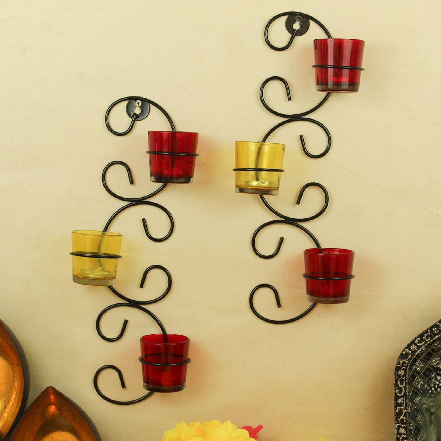 Elevate your home decor with this set of 2 Wall Hanging Tealight Candle Holders. These metal wall sconces feature a whimsical swirl design and hold glass cups to securely hold tealight candles (not included). With their warm red and amber hues, these candle holders create a cozy, inviting ambiance when illuminated. Perfect for Christmas decorations or year-round use, these wall-mounted candle holders add a touch of elegance to any room. Easy to install and maintain, they make a delightful addition to your holiday or home decor.