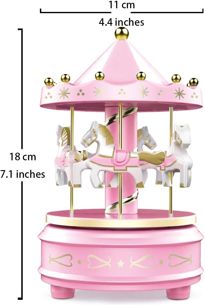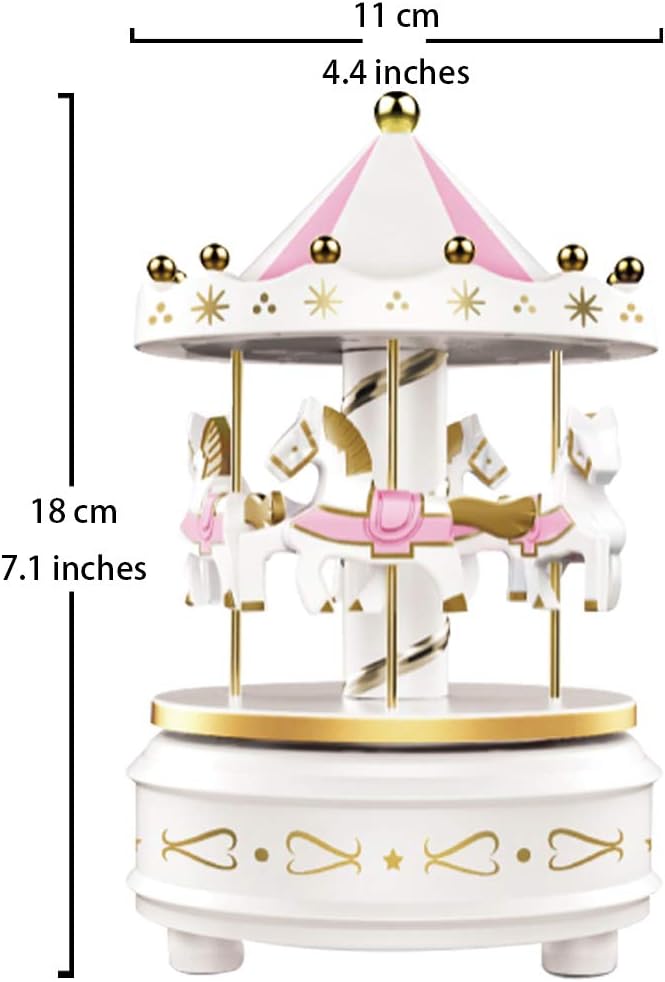 • Classic Carousel Music Box Charming rotating horses with Beethoven’s Für Elise melody—brings nostalgia and delight to children and adults. Perfect for birthday gifts, décor, and music box collectors.