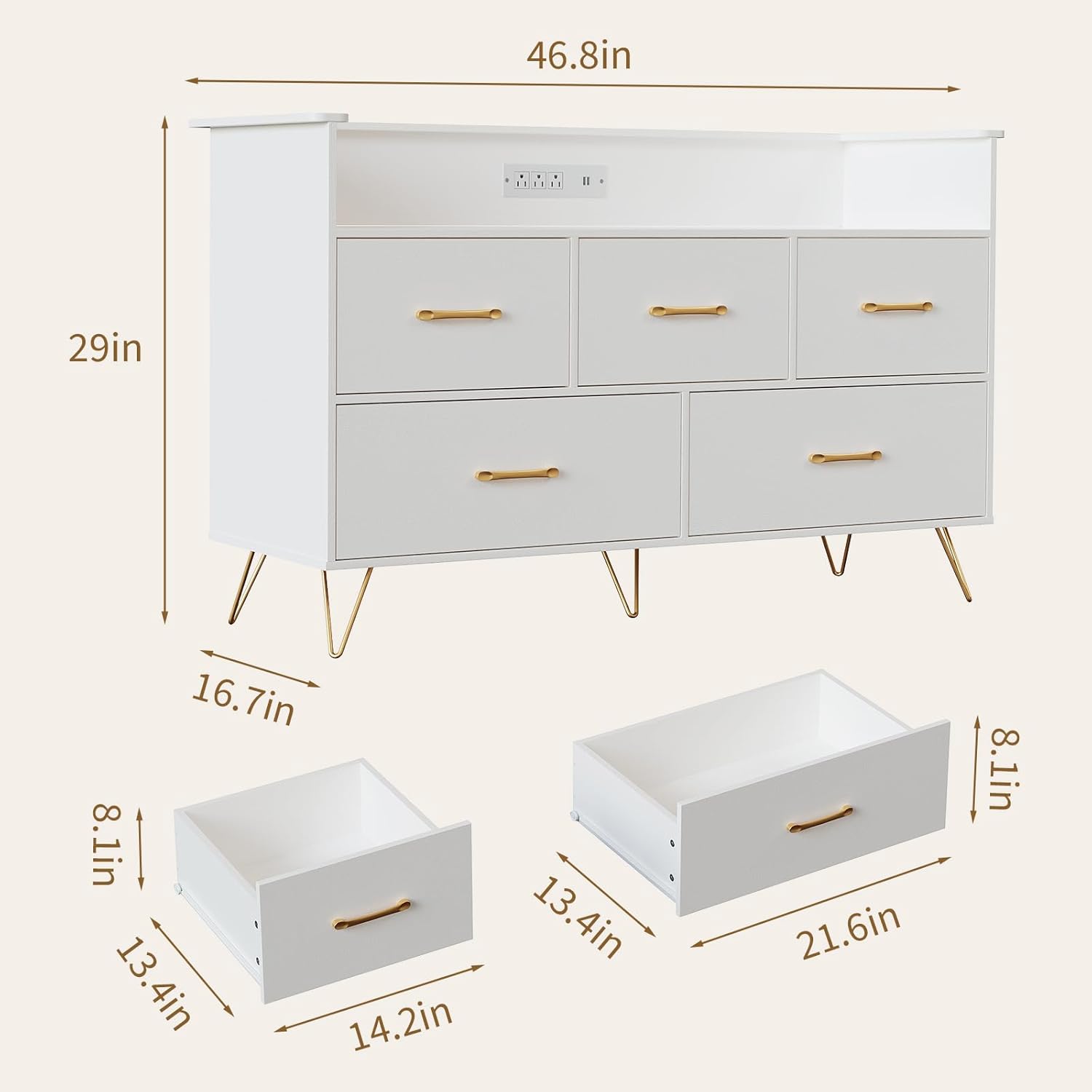 | Size | 46.8"D x 16.7"W x 29"H (5 Drawers) |