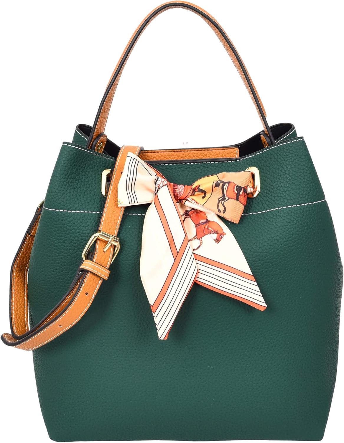 Presenting our stylish Faux Leather Hobo Bag, combining elegant design with practical use. Made from premium faux leather, it showcases a detailed ribbon at the front and comes with a detachable cosmetics bag, making it a trendy and adaptable accessory for every occasion. It boasts a top carry handle, removable shoulder strap, and four bottom metal stabilizers. Inside, it includes a removable cosmetics bag.