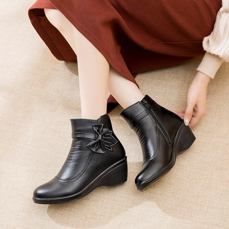 Heel Height: Mid Heel Shape: Wedge Sole Material: Polyurethane Style: Boot Toe Shape: Round Wearing Style: Side Zipper Function: Lightweight, Non-slip, Warm, Wear-Resistant Suitable Season: Winter