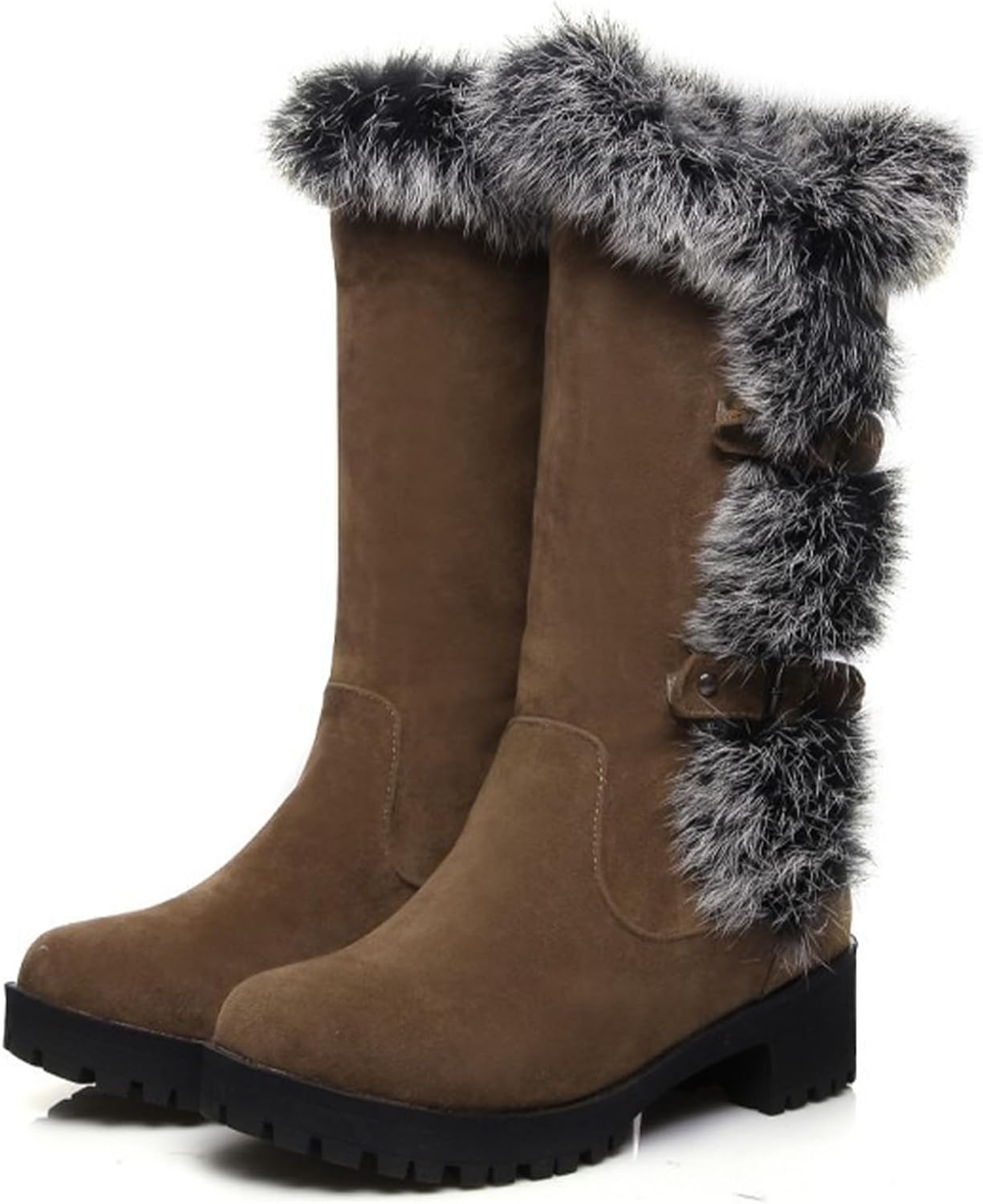 Women's Suede Leather Winter Snow Boots, Mid-Calf Slouch Waterproof Slip-on, Warm Fur Lined Hidden Wedge Heel Platform Shoes Feature: Premium suede upper with soft, breathable durability. Thick rabbit fur collar and plush lining for exceptional winter warmth. Hidden wedge heel enhances leg shape while staying comfortable. Slip-on design with a refined metal buckle for easy on/off. Ergonomic insole fits natural foot arch for all-day comfort. Non-slip, wear-resistant rubber sole ensures stable winter walking. Round-toe, mid-calf silhouette adds style and roomy comfort. Warm, fluffy interior maintains heat without shedding or fading. Specification: Name: slip on snow boots for women Material: Suede + Rabbit Fur Outsole: Rubber Heel Height: 4.5cm / 1.77in Closer: Slip-on Toe: Round Toe Heel: Chunky Heel Package includes: 1PC * mid calf winter boots for women Note: 1. Due to the light and screen difference, the item's color may be slightly different from the picture. 2. Please allow slight dimension difference due to different manual measurement.