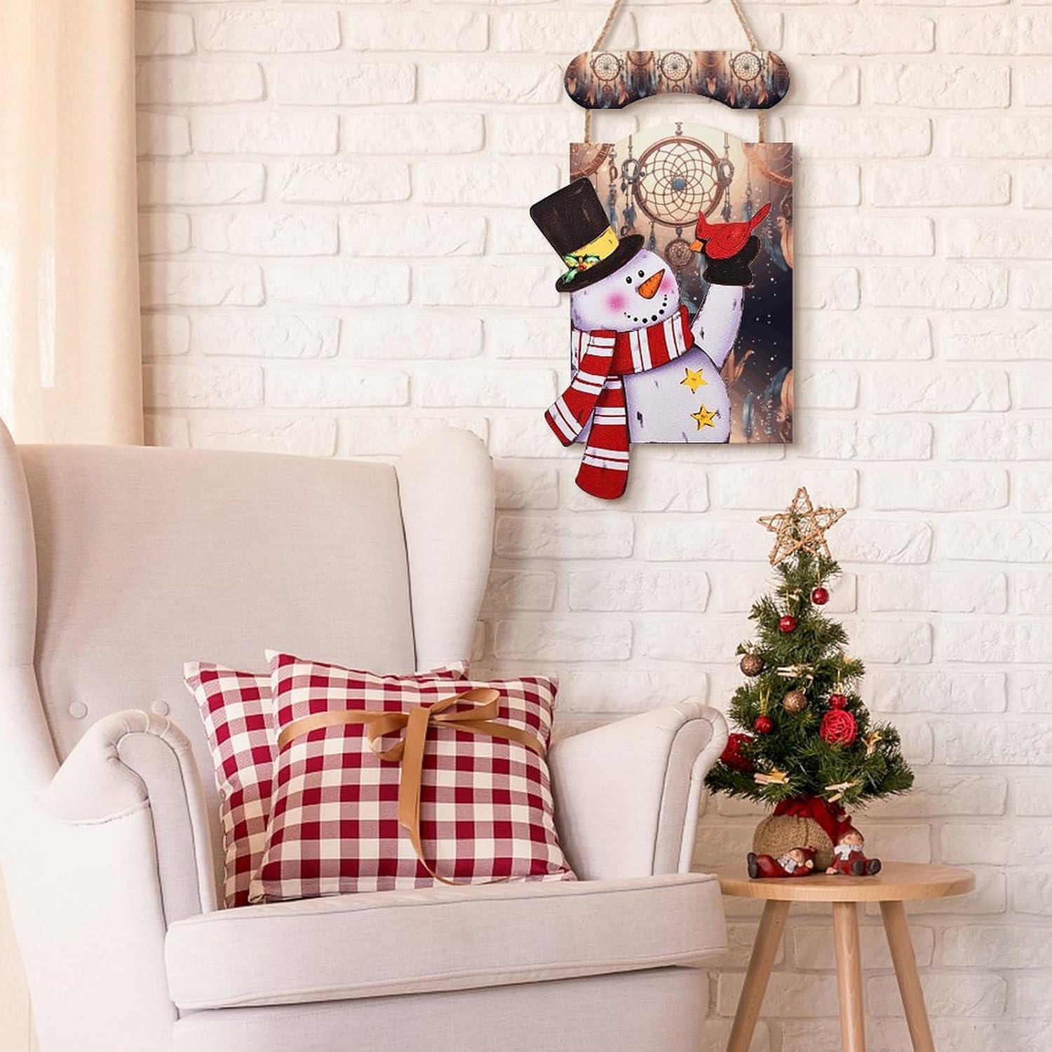 This Native American Dream Catcher printed snowman hanging painting is perfect for decorating your living room, bedroom, dorm room, and hallway. Hang it on the wall next to the tree, in the hallway, entry door, kitchen, mantel, fireplace to create a beautiful Christmas atmosphere, it can be used as a gift, or as a collectible and keepsake. It is a perfect choice for beautiful artwork
