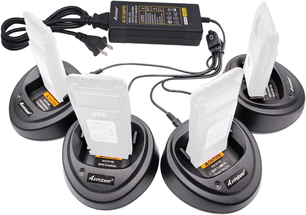 Package Included: 4 x WPLN4137 Charger Base 1 x 4 in 1 Cable Power Adapter Compatible for Motorola Chargers: WPLN4137BR WPLN4137AR WPLN4137 WPLN4138 PMPN4173 PMPN4173A Compatiable Battery Part Numbers: NNTN4970 NNTN4970A NNTN4497 NNTN4497CR NNTN4496 NNTN4496A NNTN4496AR NNTN4851 NNTN4851A NNTN4851AR Compatible with Motorola Radio Models: CP040 CP140 CP150 CP160 CP180 CP200 CP200D CP250 CP380 PR400 DEP450 DP1400 EP450 EP450S P3688 GP3688D GP3688 GP3188 Notice: 1. The charger base with the removable battery locating rail which can adapt to your standard (slim) batteries (such as nntn4851 nntn4970) or thick batteries (such as nntn4497). 2. If the battery can not be charged, please pinch out the removable piece and turn around horizontal 180 degree to re-insert and re-charge.3. If you don’t sure whether it is right, please tell us your radio model and your battery model, then we will give you better advice. Note: 1. Please kindly note that this is a replacement part with our private brand “Aimtobest” and not an original equipment manufacturer (OEM) product. Our products themselves and packaging do not have any logos or brand names. 2. The mention of brand name or specific model No descriptions is solely intended to illustrate compatibility. 3. All brand names and logos mentioned are registered trademarks of their respective owners.