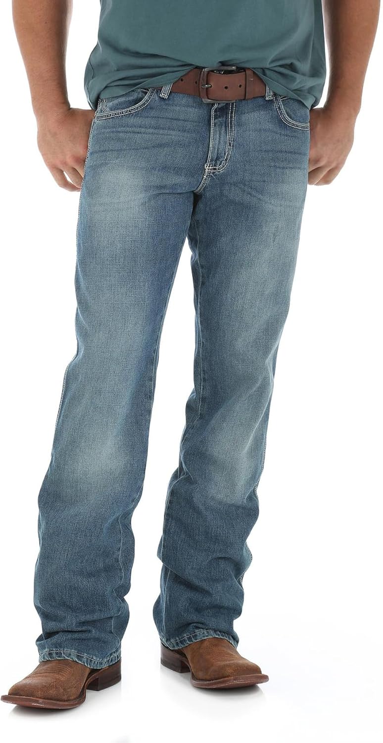The Wrangler retro mid rise relaxed fit boot cut jeans feature modern finishes and distressed detail. Looks broken in from the first time you wear them. For nearly 70 years, Wrangler has staked its claim as a global leader in jeanswear, casual apparel and fashion-forward western inspired attire. Built upon the nostalgic undercurrent of Americana heritage, the brand celebrates a rich legacy of authentic products consumers crave. Wrangler continues to preserve their American legacy while continuously developing innovative products that harness traditional roots, while expanding on its mainstream appeal as a fashion-forward label. Wrangler will prepare you for whatever the day may hold. So go ahead, be bold. Be adventurous. Be comfortable in your own jeans.