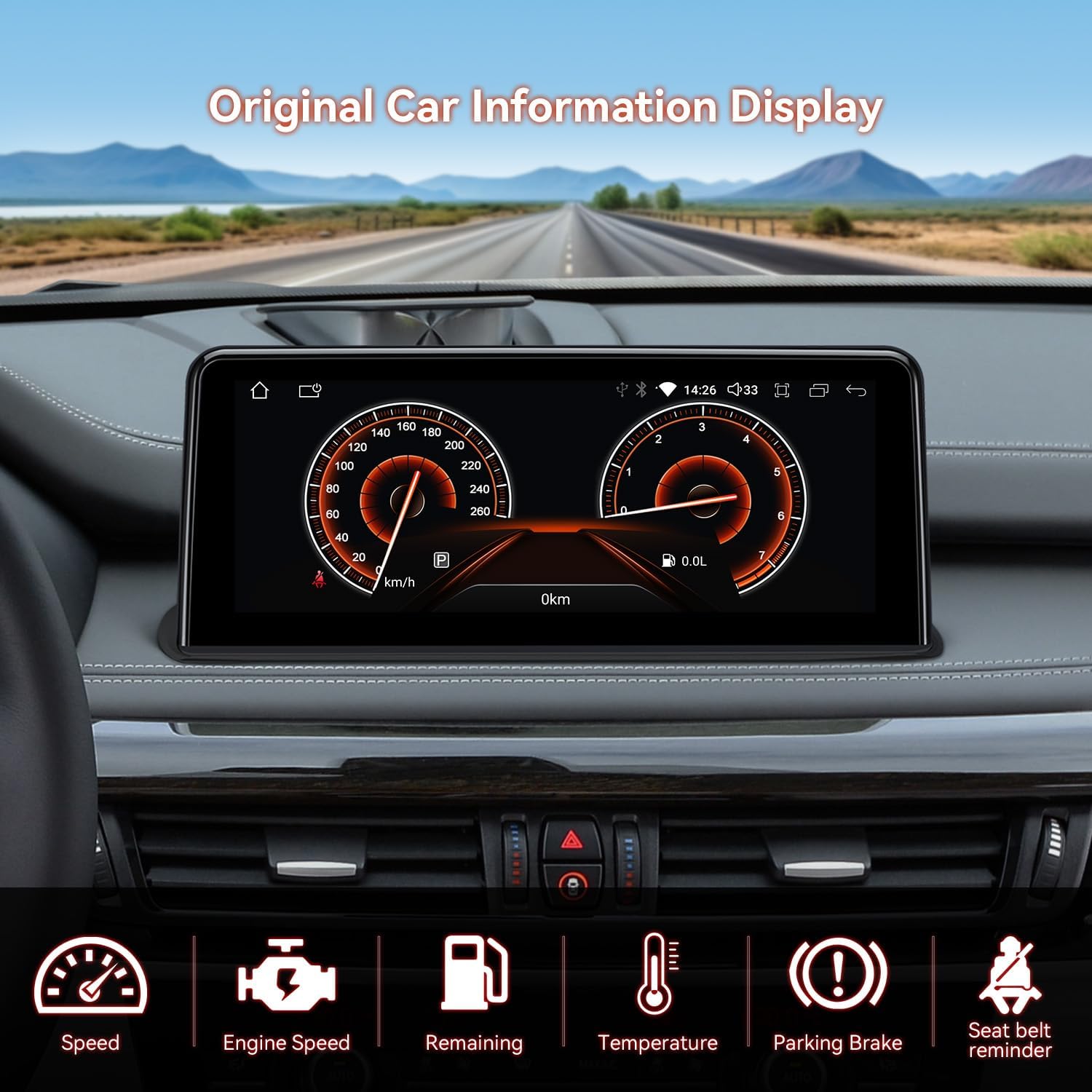 Important Notes Installing this monitor may require cutting a permanent hole in your dashboard. The cutting will not be required if there is a storage box on the top, as uninstalling the storage box will do the job. Applicable Models & Years For BMW X5 F15 (2014-2017) For BMW X6 F16 (2014-2017) Features: ※ IPS Panel, 178°Viewing Angle Enjoy viewing on a big screen stereo without eye fatigue or discomfort from any angle. ※ Supports 1080P Video Supports playing up to 1080P format video with the latest video decoder chipset. ※ Dual Wi-Fi Band Connecting Support both 2.4GHz and 5GHz Wi-Fi networking, with the higher frequency 5GHz being able to move more data around faster. ※ Built-in Wireless CarAutoPlay / Wired Android Auto It compatible with iPhone 5 and newer models with iOs 8 and above, Android phones with Android 4.3 and above. ※ Split-Screen Mode Go ahead listening music in Spotify while navigating, or making phone call with your browser open. ※ GPS Navigation Supports Google Maps, Sygic, Waze and any other navigation software that is compatible with Android OS. ※ Bluetooth 5.0 Connect your smartphone via Bluetooth to use hadsfree calls, number dialing, contact searching, audio streaming safely. Optional Accessories: Need TPMS Function? Please search ASIN: B07WQFKV5G Need Front / Reversing Camera? Please search ASIN: B07HMLYLJJ / B00GY3BVT6 Need External DVR? Please search ASIN: B07MBYCG4C / B08MF1ZRJ3Accessories: 1 × ISO Wiring Harness 1 × USB Cable 1 × 4G Antenna 1 × GPS Antenna 1 × Tweezers 1 x Mini Speaker 1 × Installation Instructions 1 × User Manual