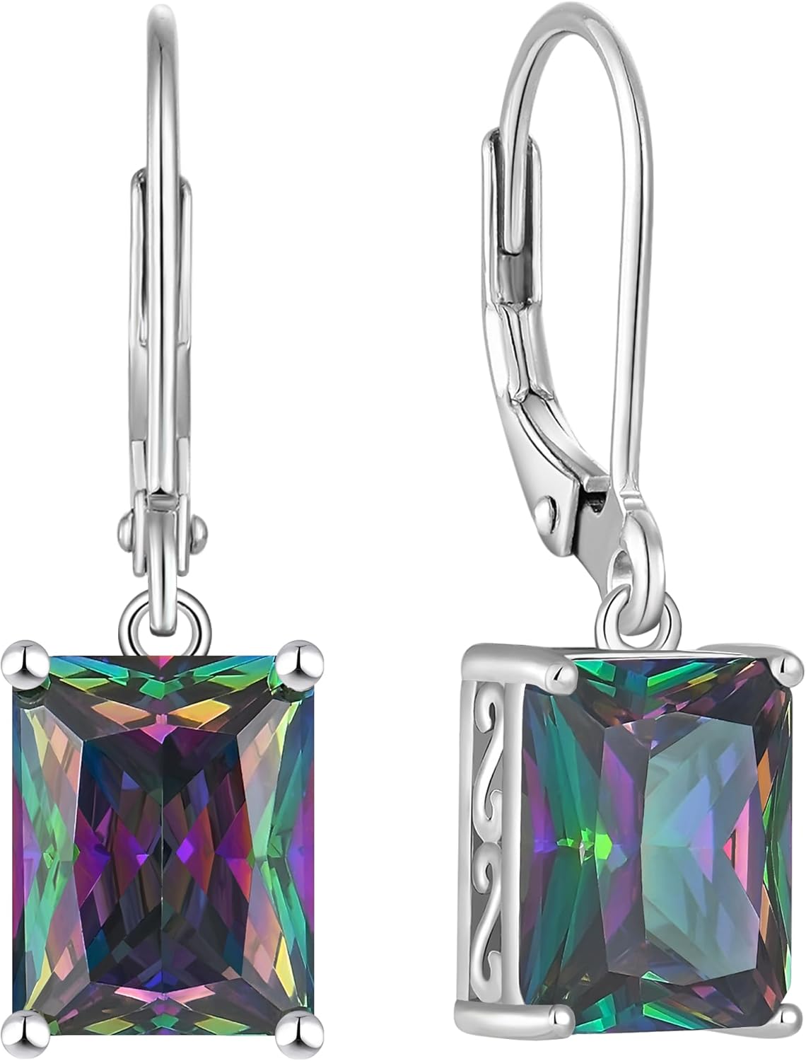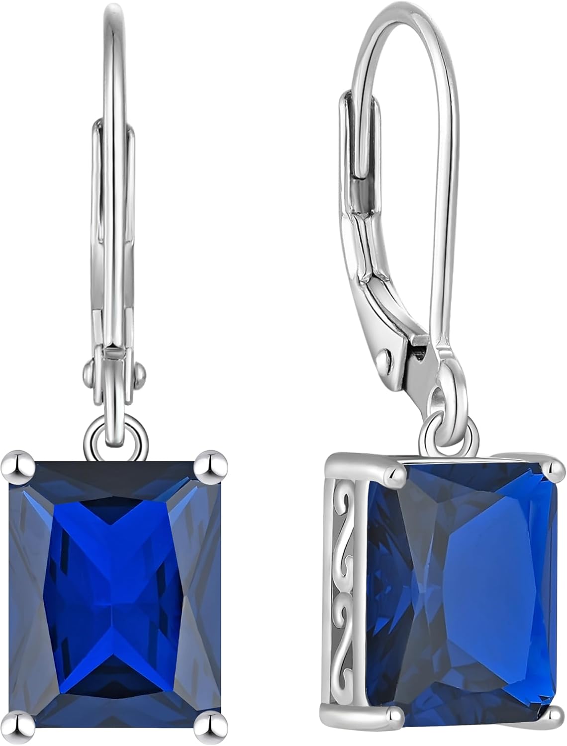 YL Solitaire Dangle Drop Earrings 925 Sterling Silver Leverback Earrings 8X10MM Square Birthstone Jewelry
